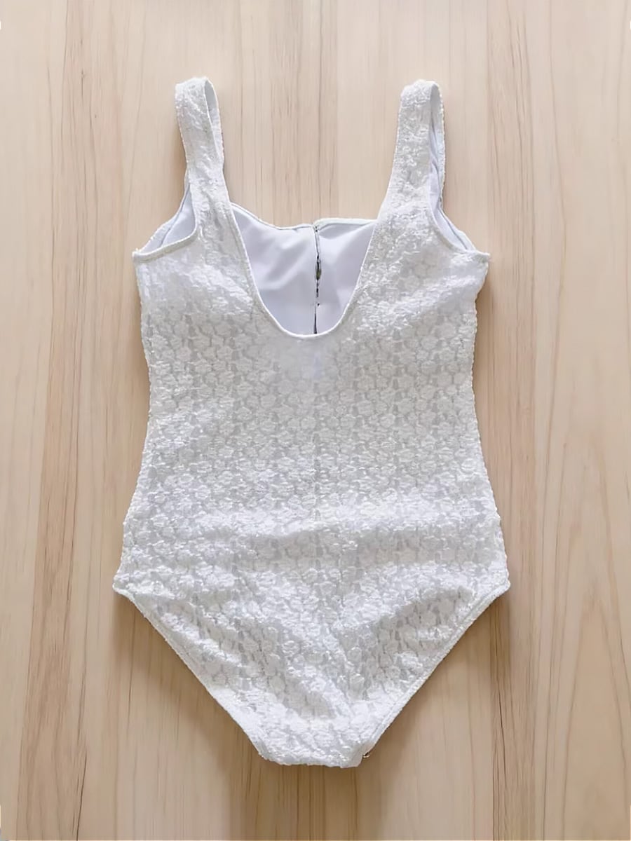 白のレースに黒のミニリボンがセクシーで可愛いワンピース水着です。