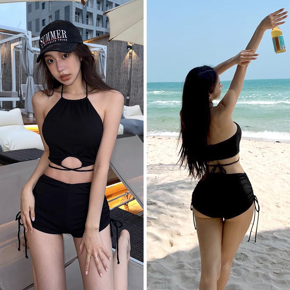 水着 ブラック ホルターネックホックレスドロストビキニ ハイウエスト ホルターネック ビキニ タンキニ クリスクロスビキニ クリスクロス 黒 スイムウェア ツーピース ビキニ キーホール 胸ホールド パッド付き ワイヤーなし スポーティ 上品 セクシー フェミニン ラブリー キュート ガーリー シンプル セクシー おしゃれ お洒落 レディース 可愛い ナイトプール リゾート スタイルアップ 大きいさサイズ 韓国コーデ 韓国ファッション