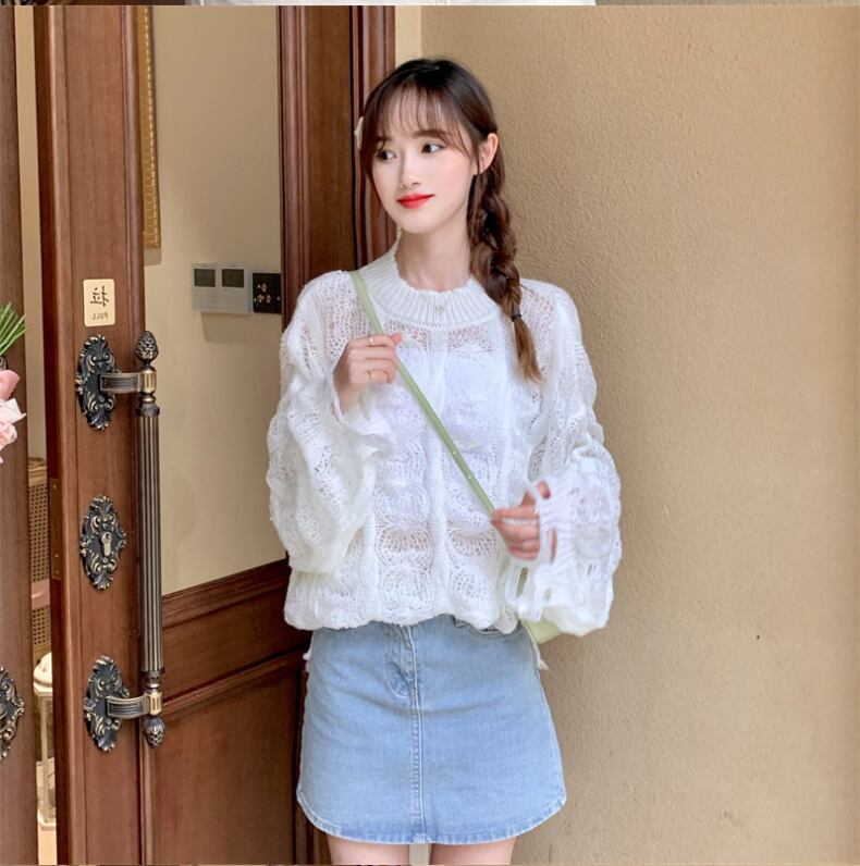 抜け感のあるクロシェ編みニットです。4色展開できれいなお色がそろっています。