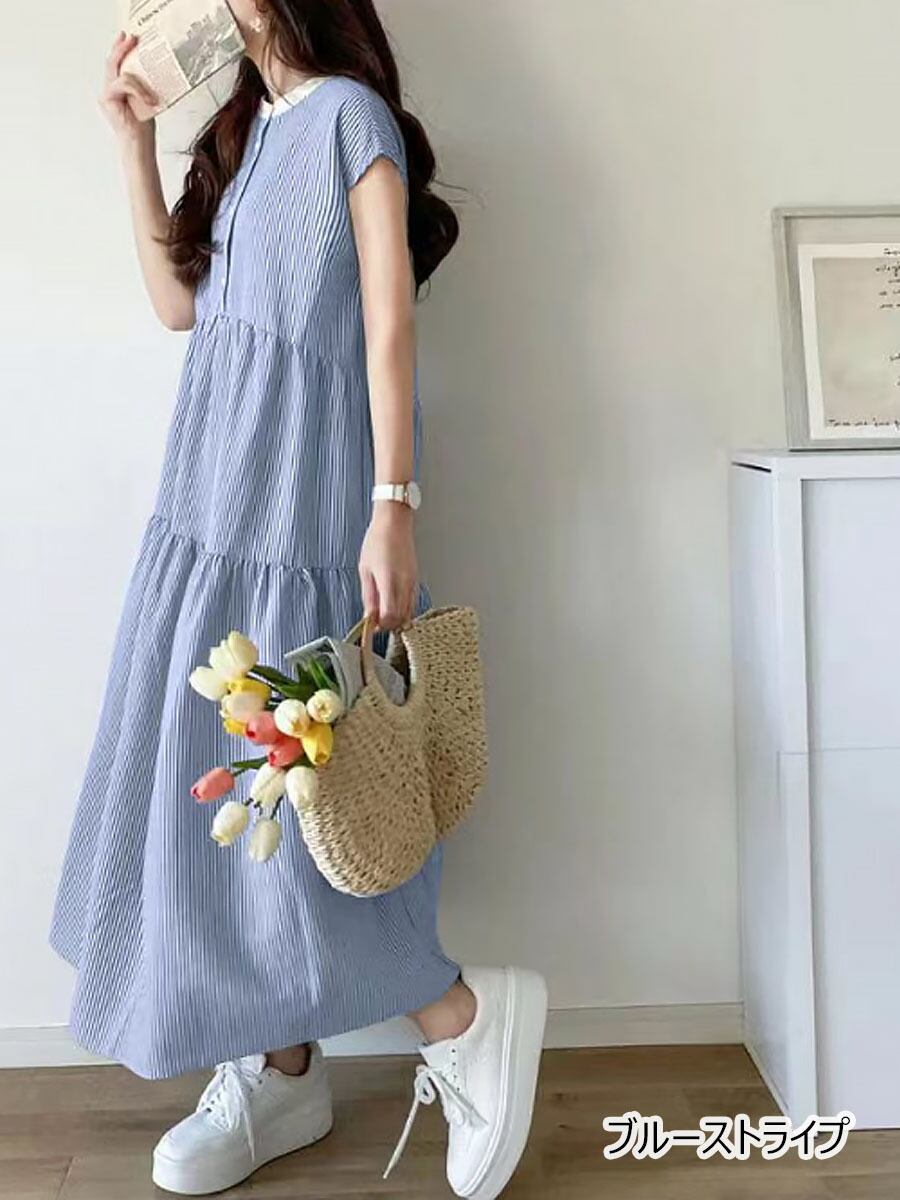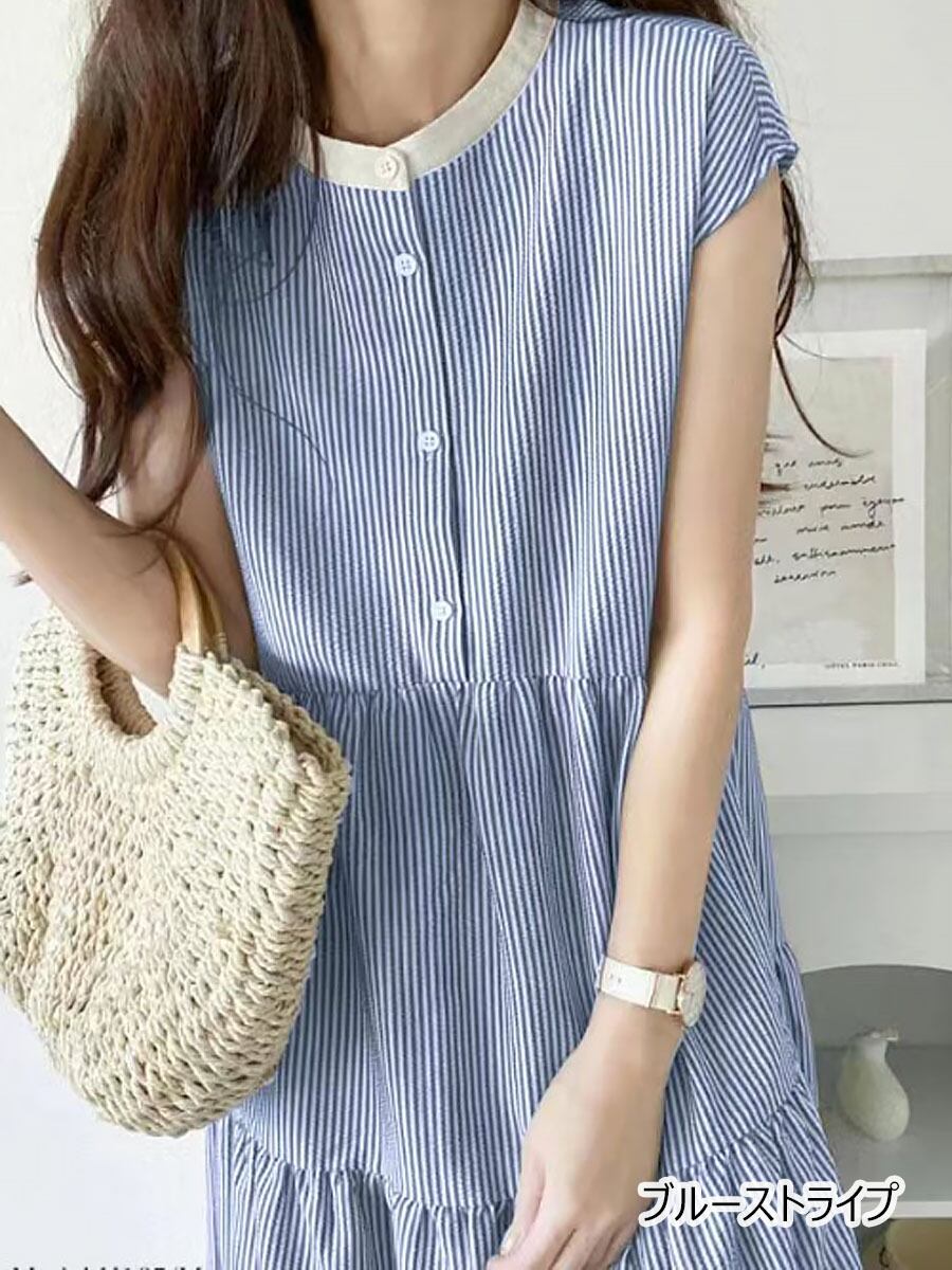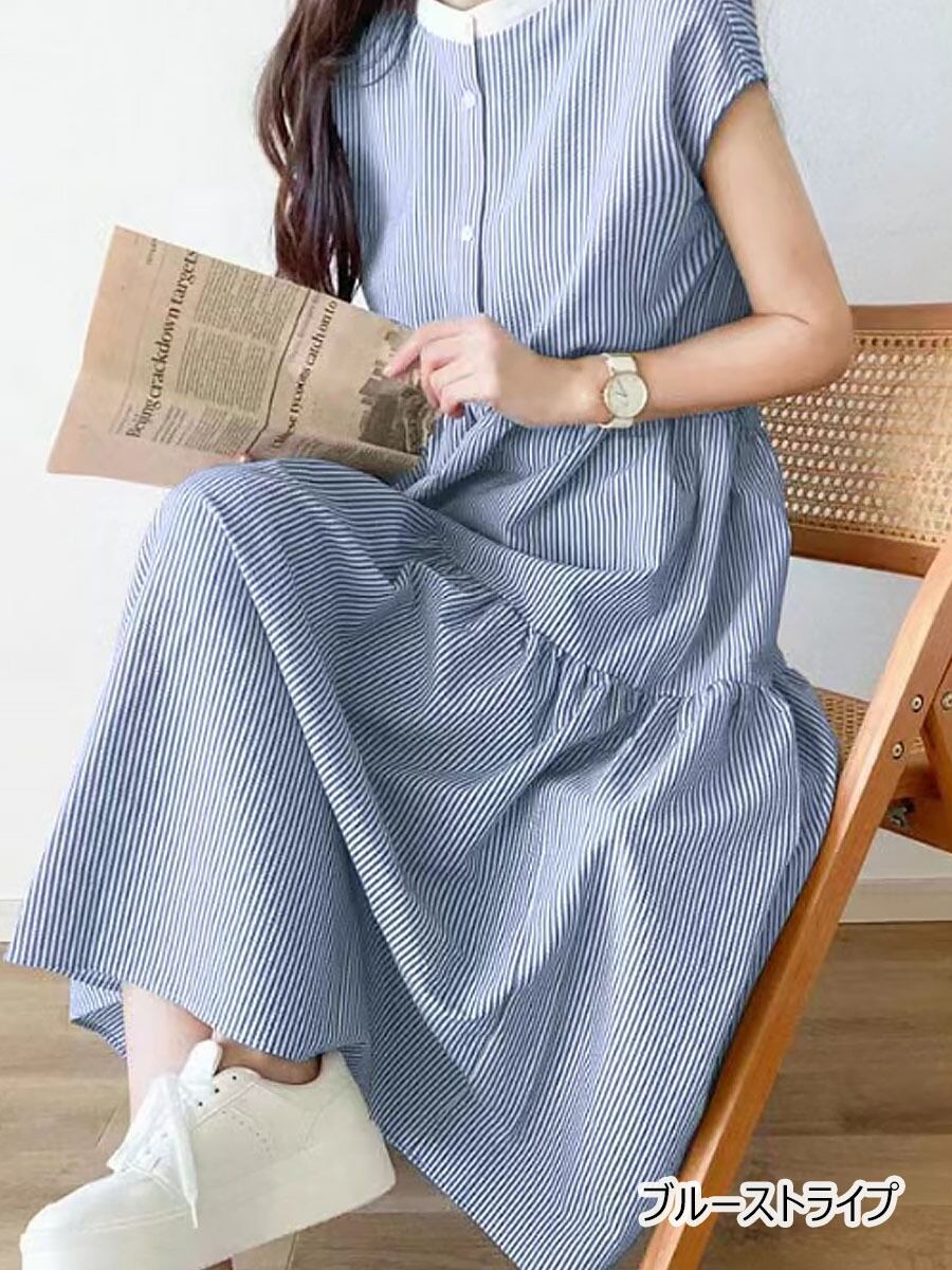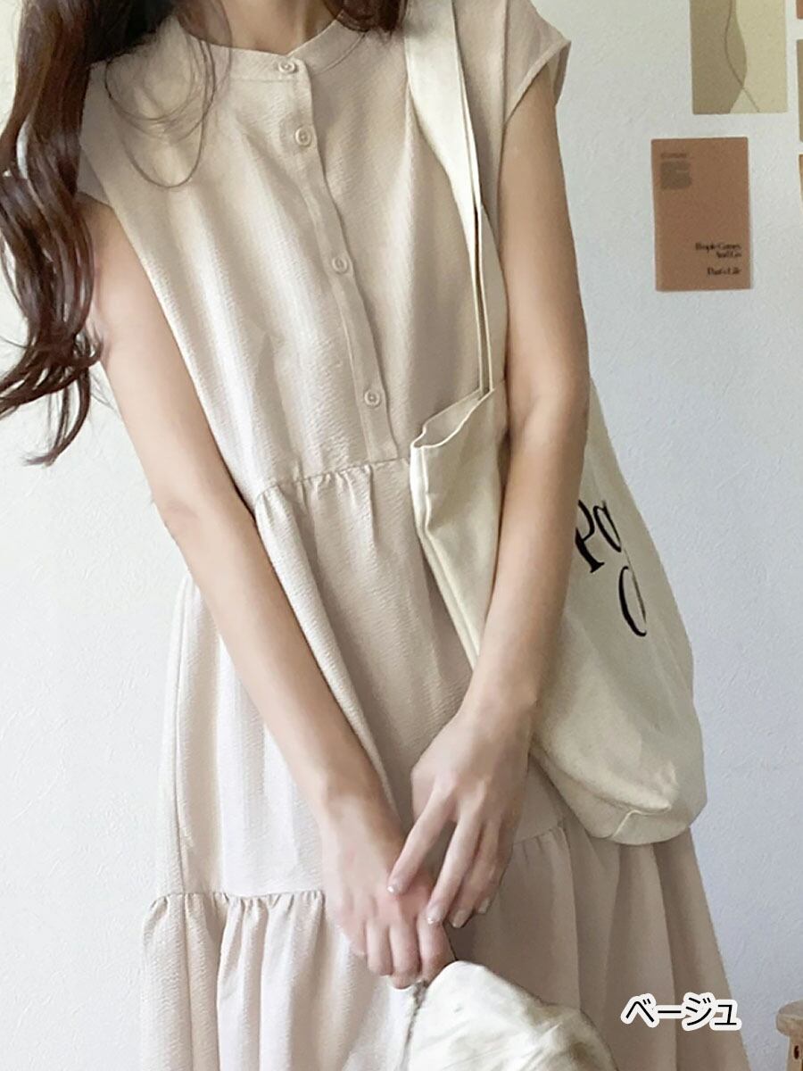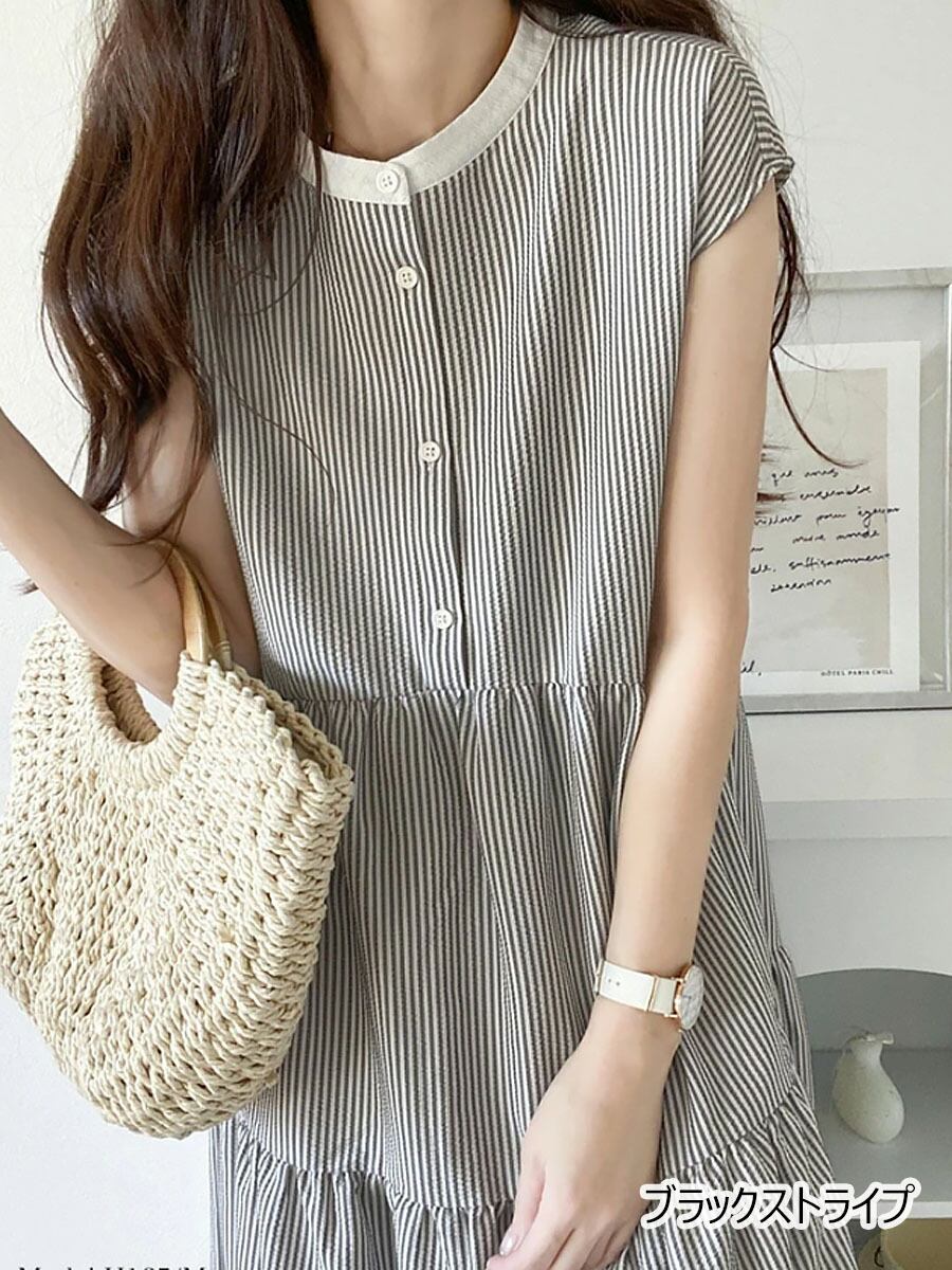 全4色 サマーノースリーブワンピース シャツワンピース ティアードワンピ ネックリボン バックリボン ティアードワンピース Aライン マキシ ロング ロングワンピ 涼しい ゆるワンピース ゆったり キレイめ デザイン ワンピ 無地 モード ナチュラル シンプル カジュアル 楽ちん 大人可愛い 体型カバー 着痩せ お洒落 韓国コーデ 韓国ファッション ベージュ 黒 ブラック ストライプ
