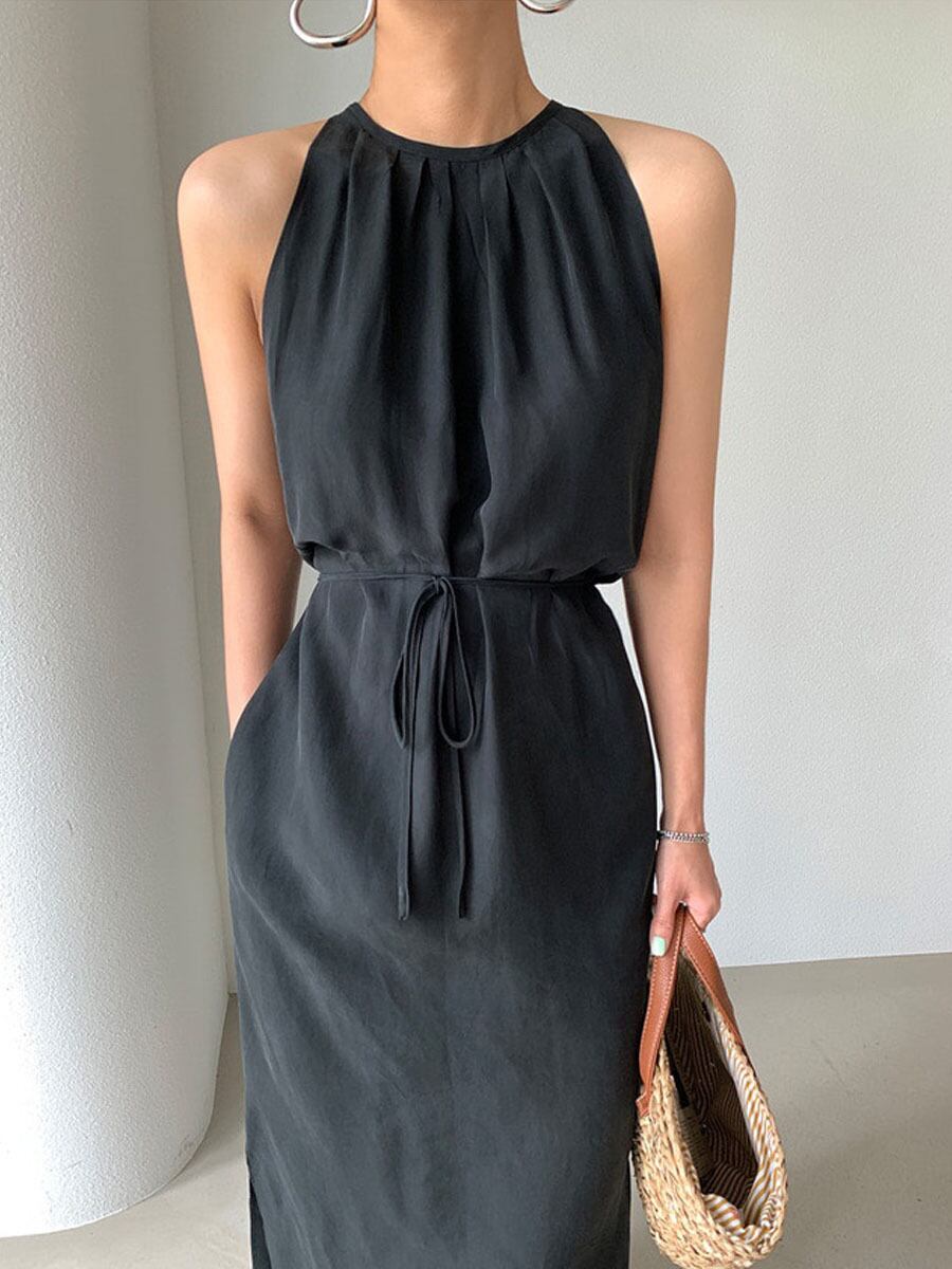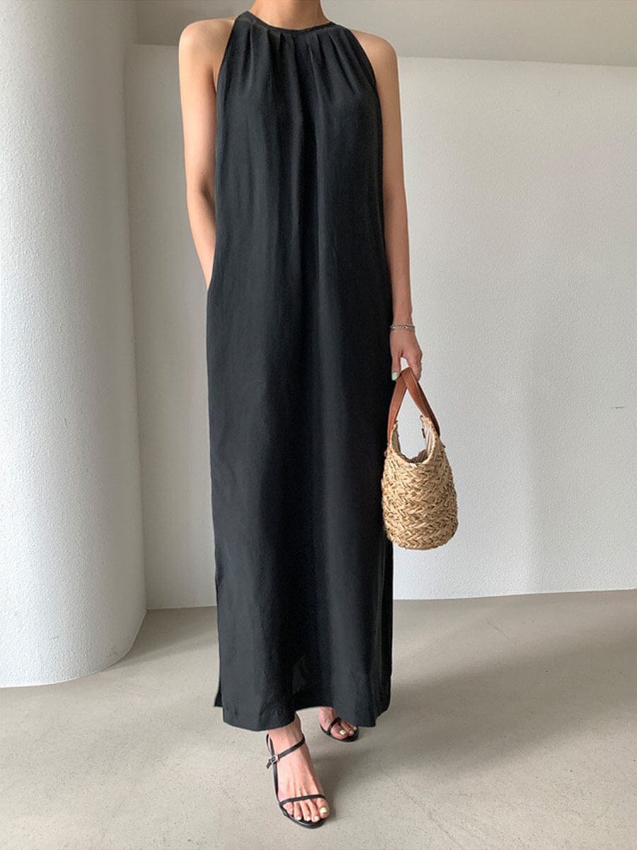 全2色 ノースリーブフロントタックロングワンピース ロングワンピース ロング マキシ Iライン ワンピース ノースリーブ ホルターネック 薄手 ウエストリボン スリット サイドスリット かわいい 大人可愛い カジュアル 大人 おしゃれ 大人可愛い 大人女子 こなれ感 キュート ガーリー レディース 通勤 通学 デート お出かけ 女子会 イベント リゾート 旅行 普段使い 休日 韓国コーデ 韓国ファッション 黒 青 くすみブルー