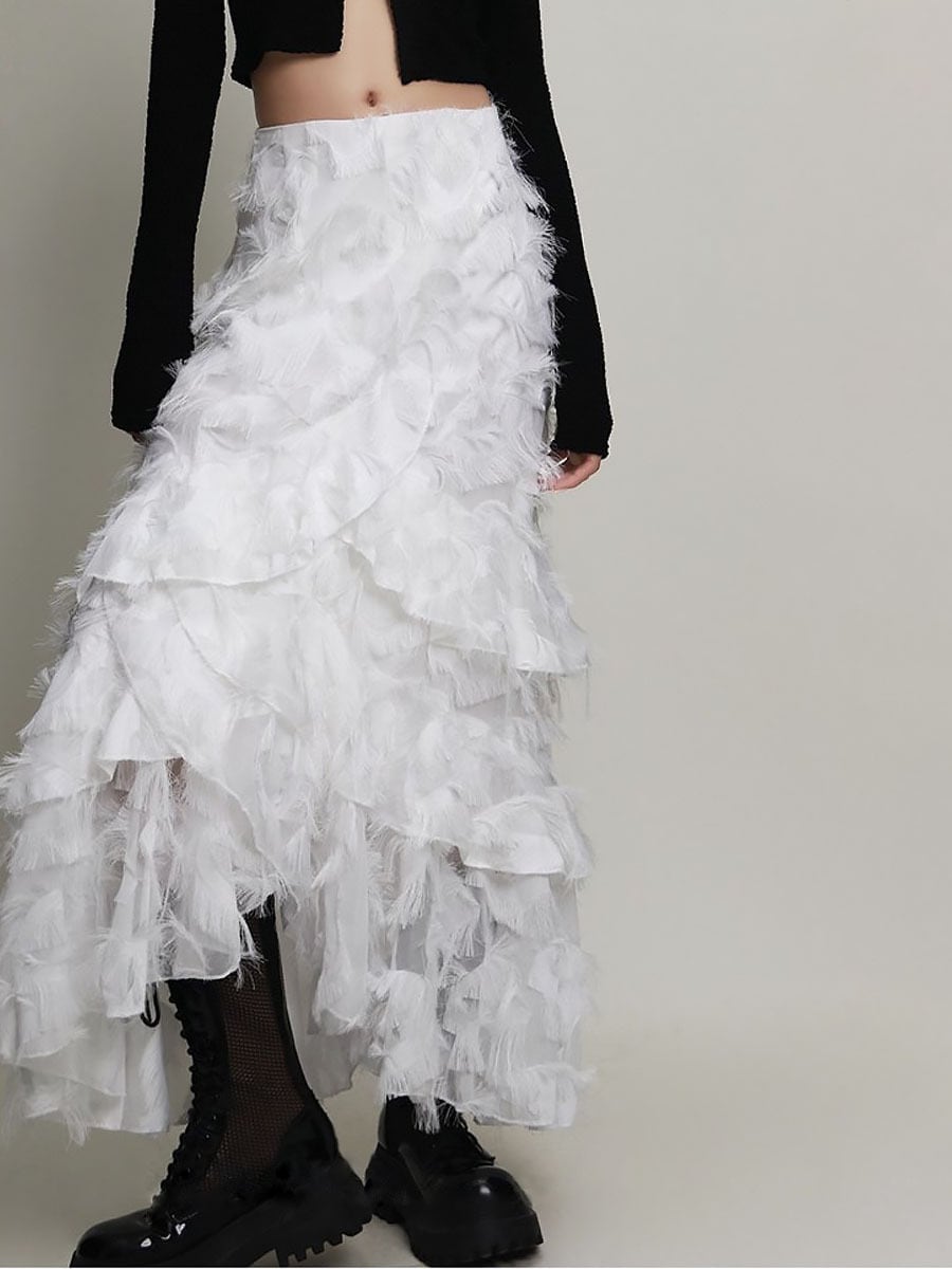 アンシンメトリーフリンジロングスカート ロングスカート フレアスカート ロング マキシ フリンジ フレア ティアードスカート ティアード 段々フリル 段々フリルスカート Aライン ン スマート ウエストゴム 伸縮性 かわいい 大人可愛い きれいめ シンプル カジュアル 上品 おしゃれ お洒落 かっこいい 大人女子 こなれ感 ラブリー キュート ガーリー 個性的 モード系 エレガント 主役級 存在感 オールシーズン 韓国コーデ 韓国ファッション 白