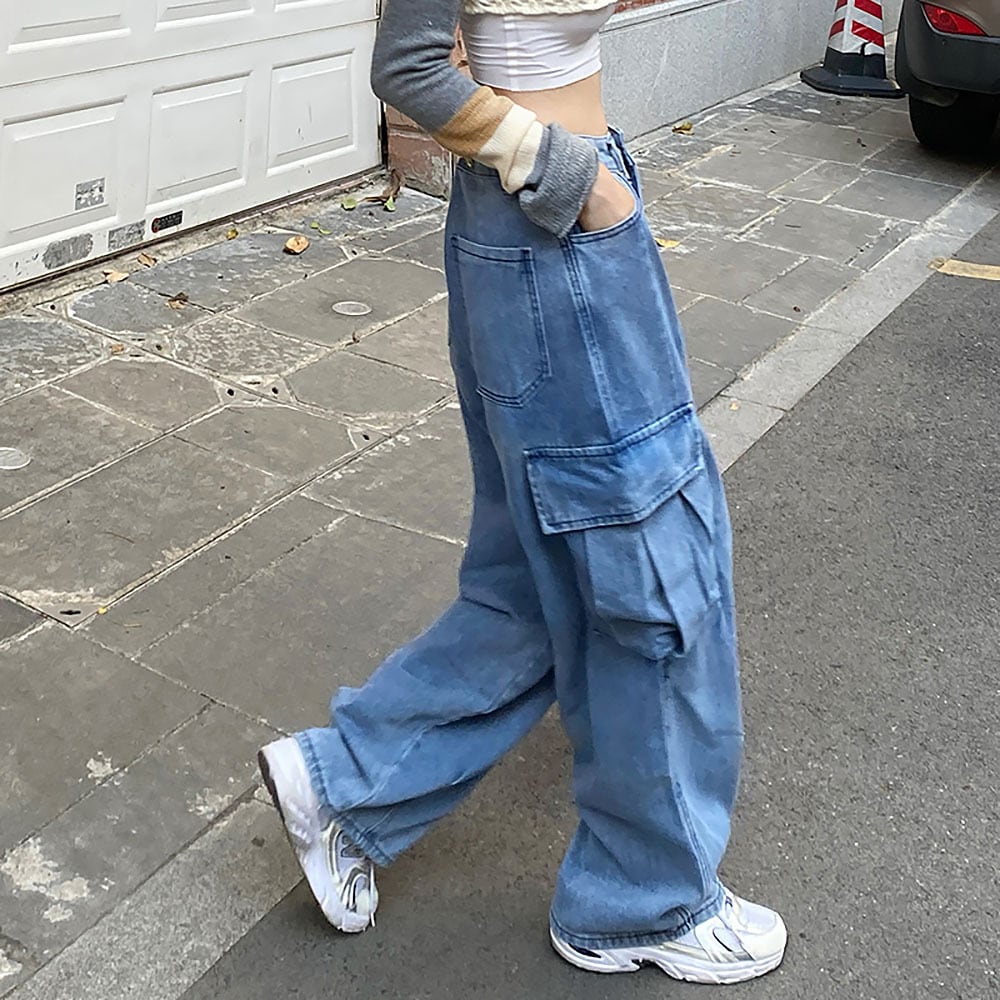 ロングデニムパンツ カーゴパンツ ハイウエスト バルーンパンツ ルーズシルエット ストリート系 ストリート デザイン ルーズデニム ワイドパンツ ワイドシルエット 足首タック サイドポケット ゆったり かわいい 大人可愛い きれいめ カジュアル ストリート系 大人 おしゃれ お洒落 かっこいい 大人可愛い 大人女子 こなれ感 ラフ ラブリー キュート ガーリー 個性的 レディース 学生 通学 デート お出かけ 旅行 ブルー 韓国コーデ 韓国ファッション