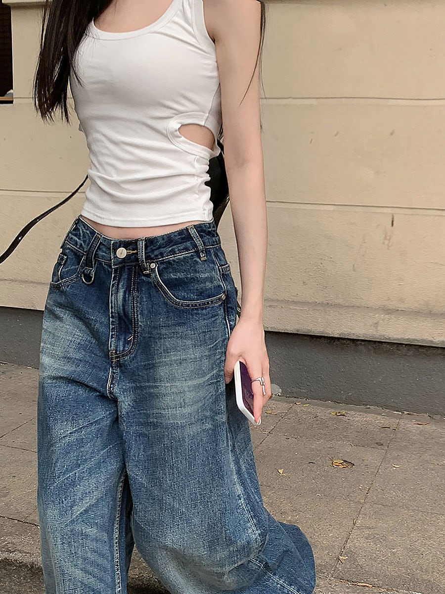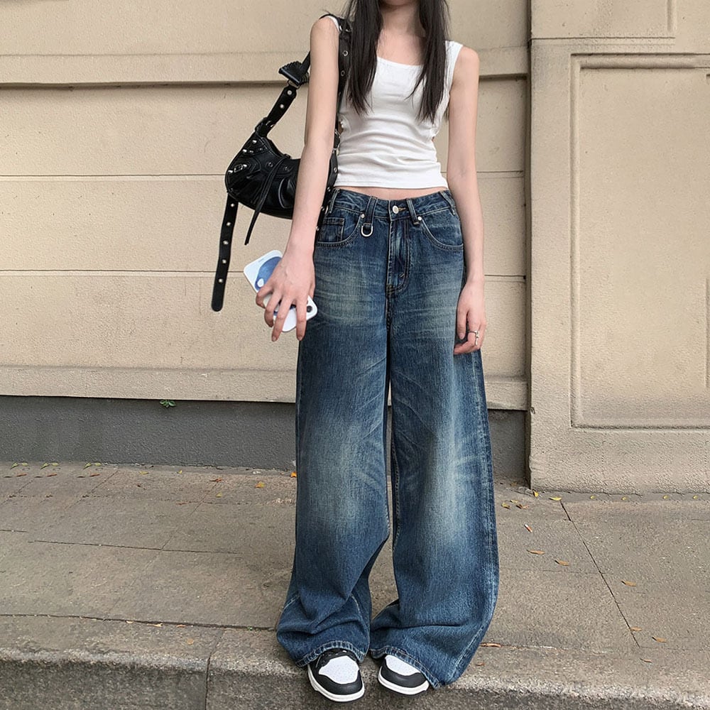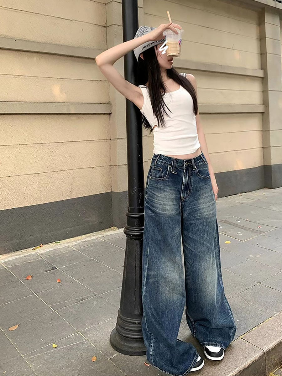 ウォッシュ加工ロングデニムパンツ カーゴパンツ ハイウエスト だぼだぼ だぼっと ワイドシルエット ワイド ビンテージ風 ルーズデニム ストリート モップパンツ モップデニム ワイドパンツ かわいい 大人可愛い きれいめ カジュアル ストリート系 大人 おしゃれ お洒落 かっこいい 大人可愛い 大人女子 こなれ感 ラフ ラブリー キュート ガーリー 個性的 レディース 学生 通学 デート お出かけ 旅行 ブルー 韓国コーデ 韓国ファッション
