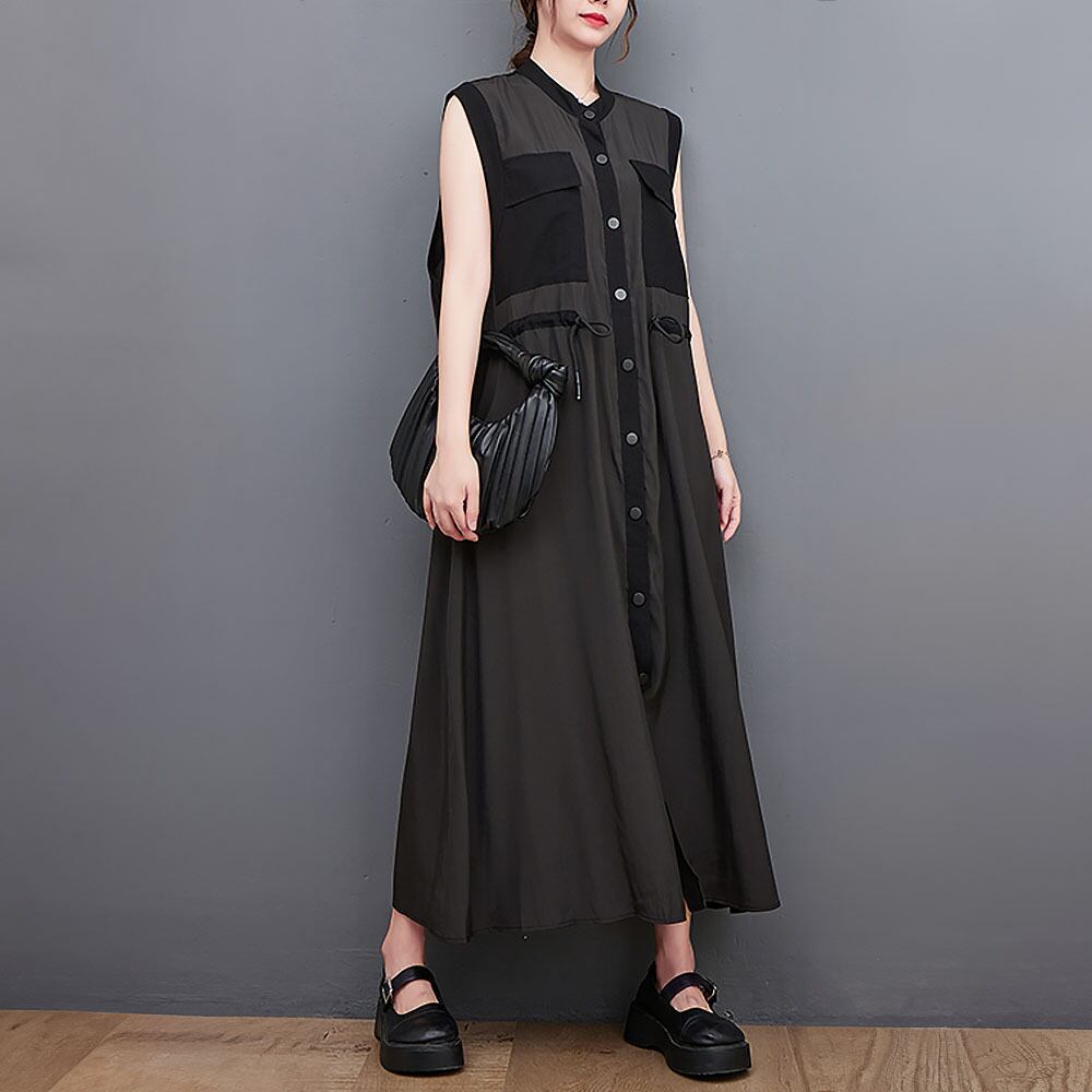 全2色 ノースリーブロングワンピース サマーワンピ フレアスカート ボタン フレアワンピース ロング マキシ ノースリーブ 薄手 ウエストマーク ウエストドロスト ウエスト紐 楽ちん リゾート着 かわいい 大人可愛い カジュアル 大人 おしゃれ 大人可愛い 大人女子 こなれ感 キュート ガーリー 春 夏 10代 20代 30代 40代 50代 レディース リゾート 旅行 普段使い 休日 グリーン ブラック 韓国コーデ 韓国ファッション