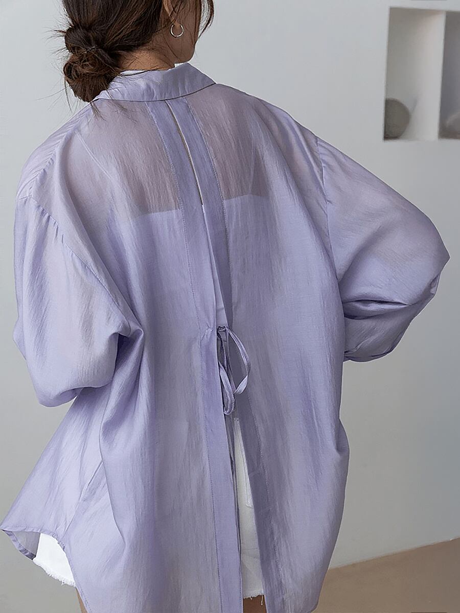 全2色 背中開きスリットシャツブラウス バックオープンリボンシャツ シャツ ブラウス 袖あり 長袖 リボン留め ストレート オーバーサイズ 羽織り かわいい 大人可愛い きれいめ シンプル カジュアル 大人 おしゃれ かっこいい レトロ 大人女子 こなれ感 キュート ガーリー 個性的 レディース 学生 通学 デート イベント 着回し 普段使い モテ サイズ ホワイト 白 韓国コーデ 韓国ファション
