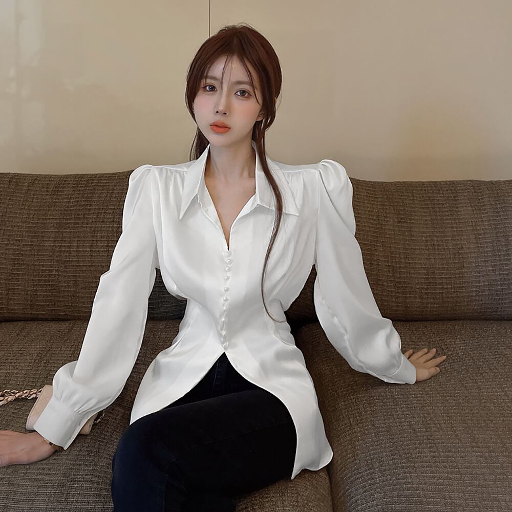 全3色 バックリボンフレンチレトロブラウス シャツブラウス ヘプラムブラウス トップス シャツ ブラウス 袖あり 長袖 Vネック 長め 大人可愛い きれいめ シンプル カジュアル 大人 上品 おしゃれ お洒落 かっこいい 大人女子 こなれ感 ラブリー キュート エレガント フォーマル オールシーズン ウエスト細見え レディース デート お出かけ 着回し 普段使い スタイル 楽ちん モテ 韓国コーデ 韓国ファッション ホワイト アイボリー 黒 ブラック 白