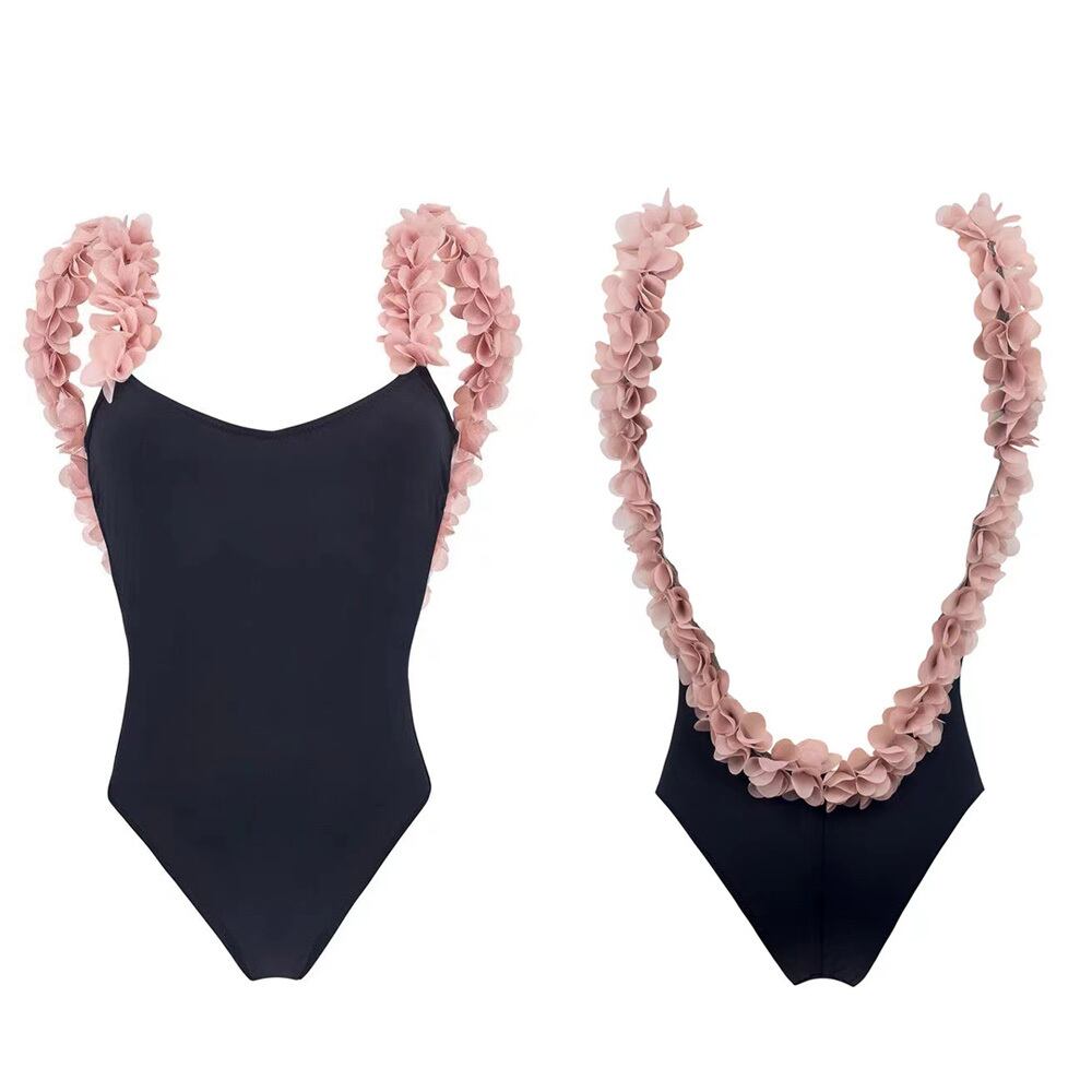 全2色 水着 花びらストラップワンピース ワンピース水着 無地 Uバック パット付き ワイヤーあり 花の縁取り 黒 ピンク 白 バイカラー 配色 ツートンカラー シンプル かわいい ベーシックフォルム 大人可愛い コローラ おしゃれ ラブリー キュート ガーリー 10代 20代 30代 レディース 女の子 ペアコーデ お揃い 海 ビーチ プール リゾート バカンス 韓国系 オルチャン S M L LL ブラック ホワイト 韓国コーデ 韓国ファッション 黒