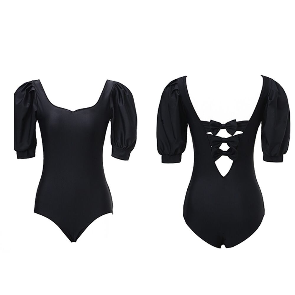 まるでバレリーナのレオタードのような半袖のワンピース水着です。