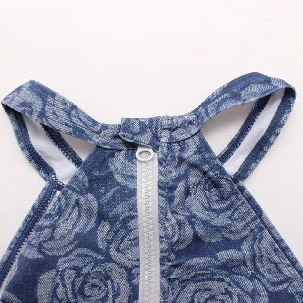 ブルーローズプリントのスカート付きのワンピース水着です。