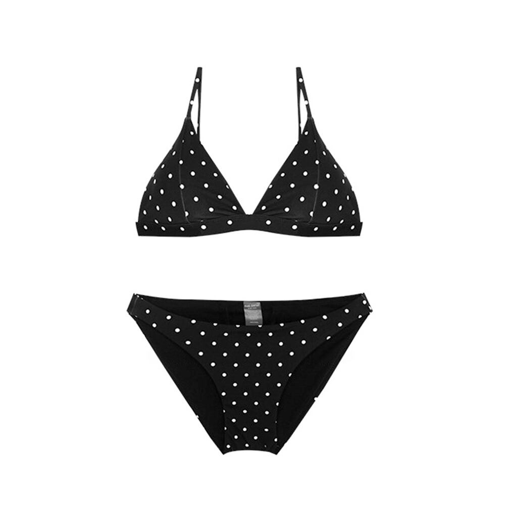 水着 ドットプリントブラレットビキニ ドットプリント ビキニ 水玉 水玉模様 三角ビキニ 黒地 スイムウェア セパレート シンプル ベーシック パッド付き ワイヤーなし 大人っぽい 色っぽい 黒 白 かわいい 大人可愛い 盛り 寄せ 体型カバー 胸寄せ きれいめ セクシー sexy シンプル 華やか おしゃれ スタイリッシュ モダン エキゾチック 美脚 脚長 バカンス プール 海 韓国コーデ 韓国ファション