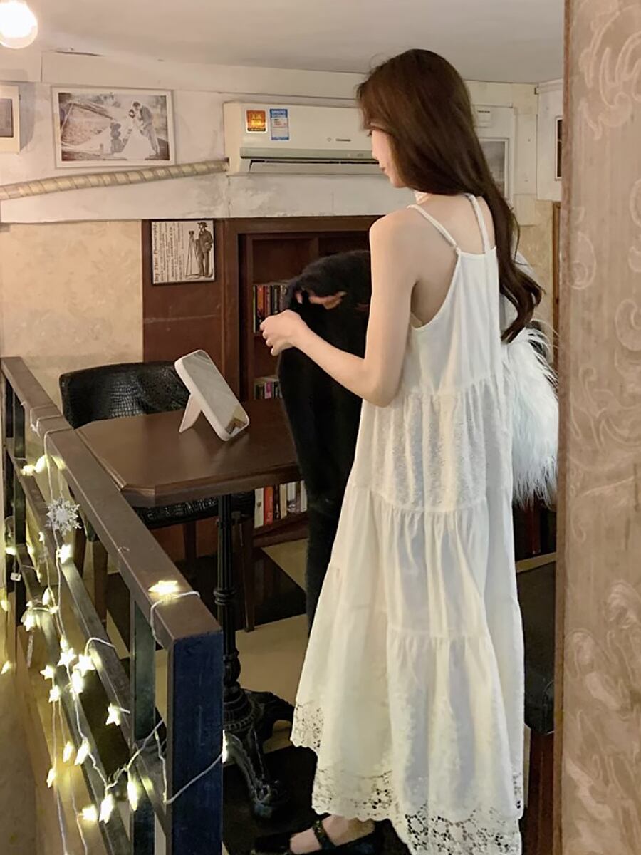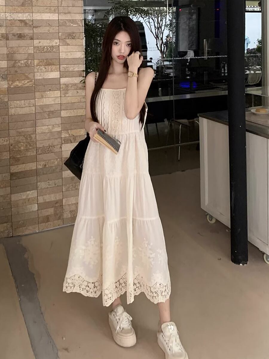 レースティアードキャミソールワンピース レース フレアワンピース ティアードワンピース ワンピドレス ロング 段々フリル キャミワンピ ノースリーブ 夏ワンピース 襟なし フレア Aライン 切り替えデザイン プリーツ 刺繍 レース フリル かわいい 大人可愛い きれいめ シンプル カジュアル おしゃれ お洒落 かっこいい レトロ 大人女子 ラブリー キュート ガーリー エレガント 主役級 存在感 韓国ファッション 韓国コーデ スタイル 高見え 格上げ モテ インスタ映え アプリコット
