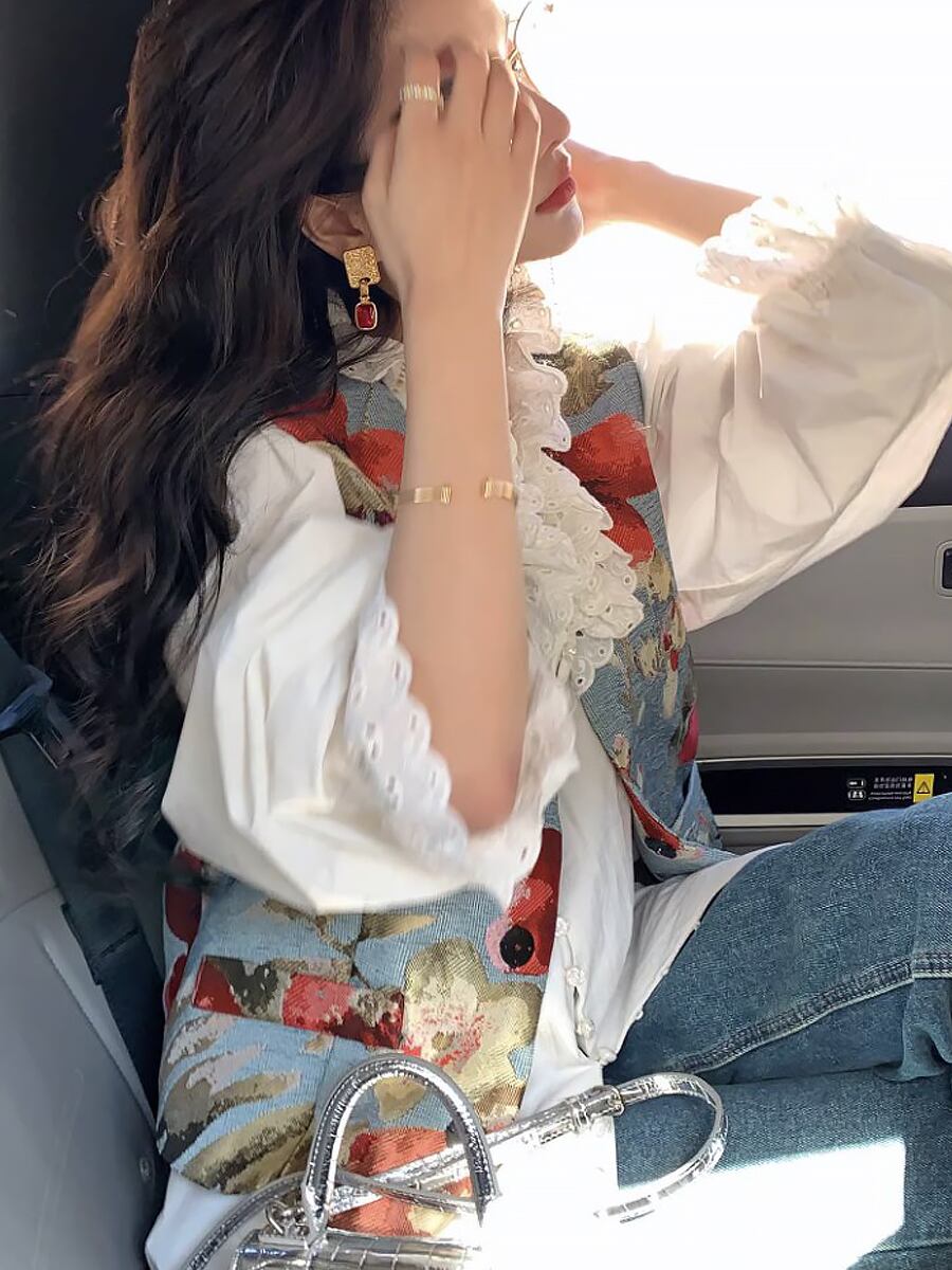 Vネック綿レースブラウス ホワイトブラウス ホワイトシャツ シャツブラウス Vネック 手首レース 襟レース 飾りボタン あわせやすい 長袖 ボリューム袖 フレアスリーブ フレンチスリーブ バルーンスリーブ 萌袖 襟ぐり広め ワイド スマート フリル 前開き 混綿 かわいい 大人可愛い きれいめ シンプル カジュアル 上品 おしゃれ お洒落 かっこいい レトロ 大人女子 こなれ感 ラブリー キュート ガーリー 個性的 エレガント モダン 主役級 抜け感 韓国コーデ
