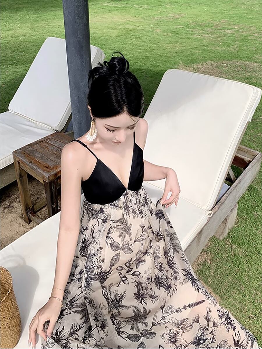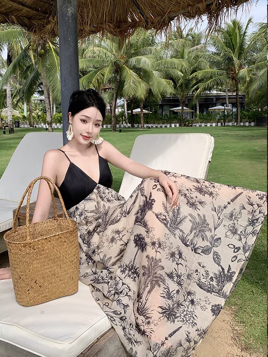 Vバックキャミソールマキシワンピース ワンピース ドレス ボタニカルプリント くすみカラー くすみイエロー リゾートワンピース エキゾチック 上品 バックカット ベアバック 夏ワンピース 背中見せ ロング ロングワンピース Aライン 切り替えデザイン マキシ ゆったり 楽ちん レトロ柄 オシャレ 大人女子 こなれ感 ラブリー キュート 体型カバー エレガント モダン 主役級 とろみ感 抜け感 お出かけ 韓国コーデ 韓国ファッション