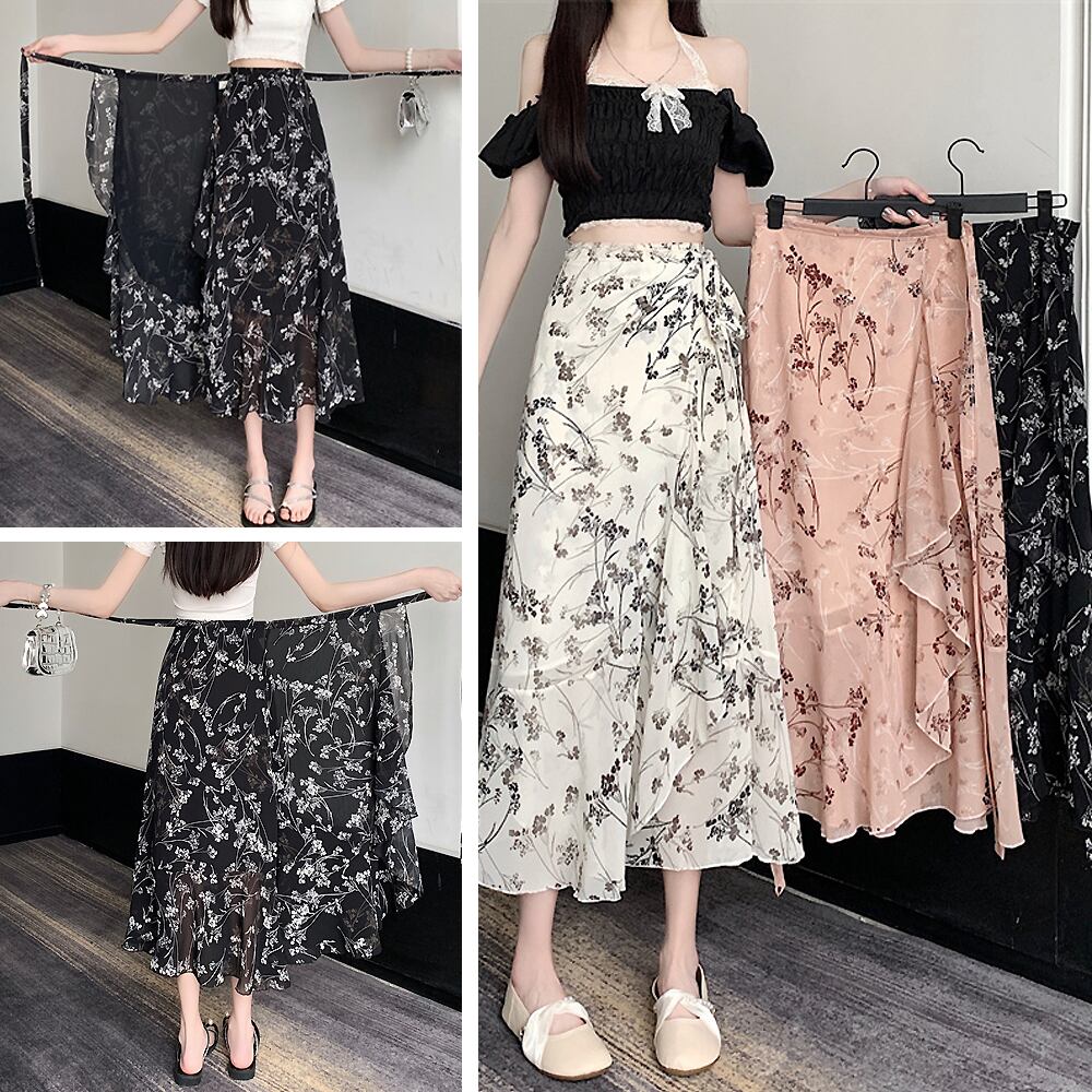 全3色 花柄シフォン巻きスカート ラップスカート フレアスカート ラップフレアスカート 膝下 ミモレ ロング ロング丈 フレア Aライン 巻きスカート リボン ウエストマーク ウエストリボン かわいい 大人可愛い きれいめ カジュアル 上品 おしゃれ レトロ 大人女子 こなれ感 ラブリー キュート 個性的 モード系 モダン 主役級 存在感 抜け感 レディース お出かけ 着回し ファッション コーデ モテ 韓国コーデ 韓国ファション ブラウン 白 黒 ピンク ホワイト ブラック