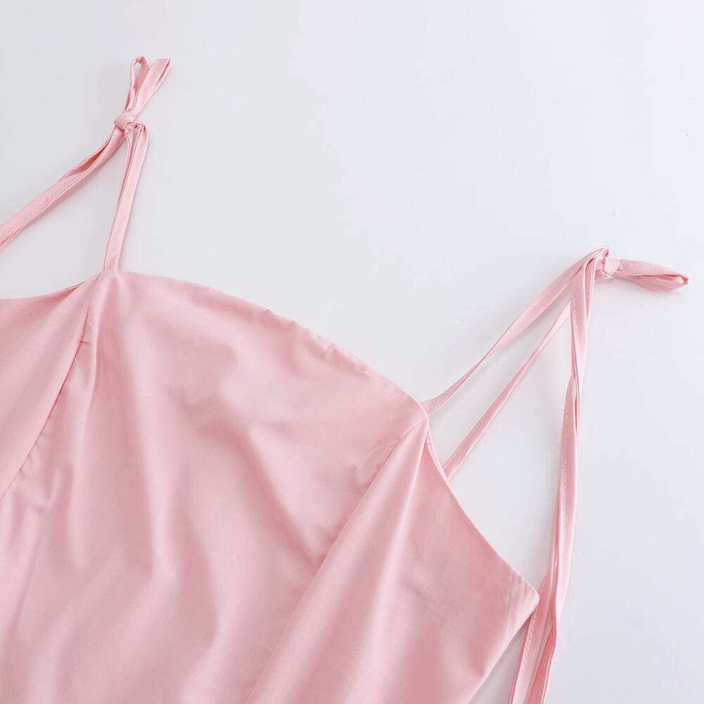 肩紐がリボンになっている配色のキャミソールのサマーワンピースです。