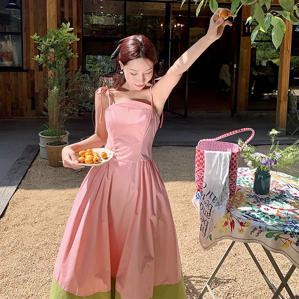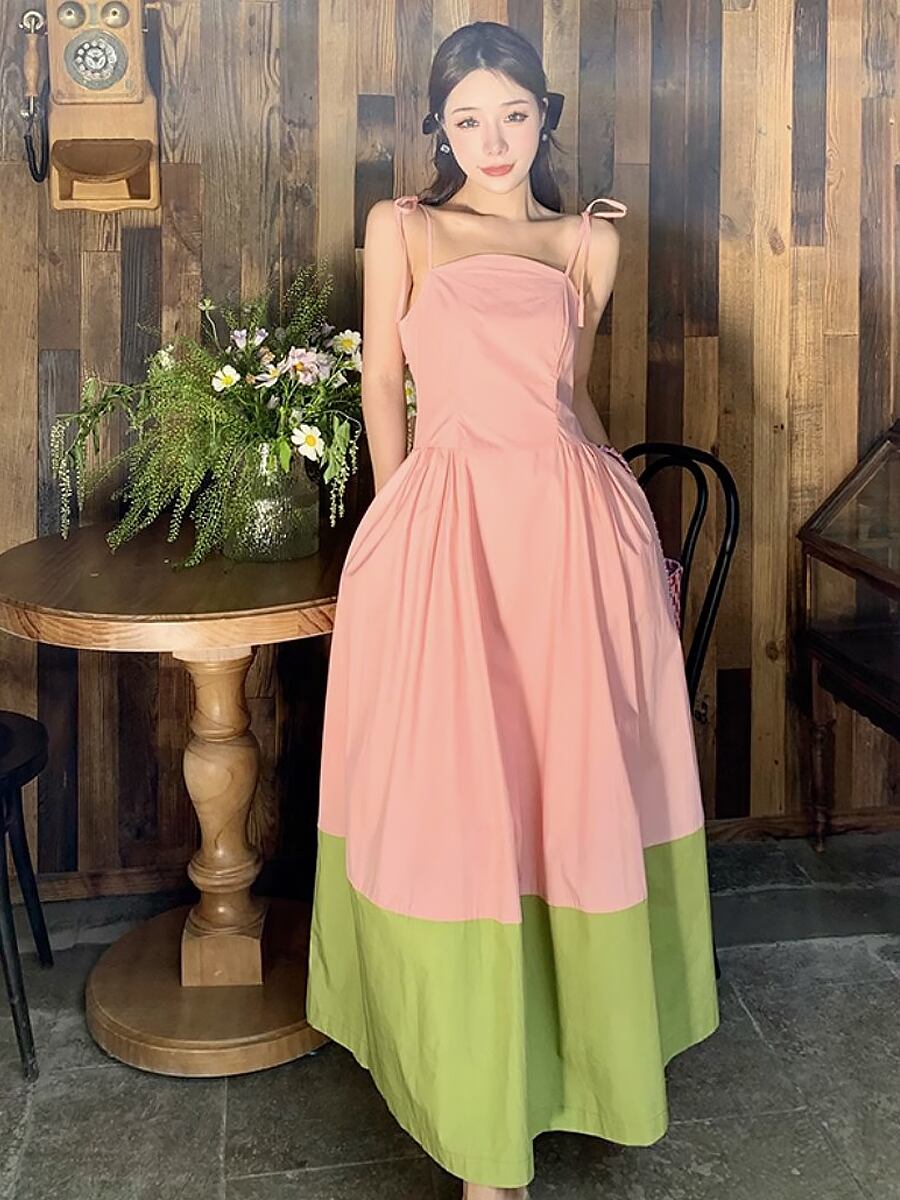 キャミソールマキシワンピース ワンピース ドレス キャミワンピ リゾートワンピース バイカラー 配色 緑 ピンク ライトグリーン グリーン 後ろファスナー Aライン ウエストマーク 切り替えデザイン 夏ワンピース サマーワンピース サマードレス ロング ロングワンピース ク 涼しげ ゆったり 楽ちん 上品 レトロ柄 オシャレ ガーデンパーティ パーティ 大人女子 こなれ感 ラブリー キュート 体型カバー エレガント モダン 主役級 抜け感 お出かけ 韓国コーデ 韓国ファッション