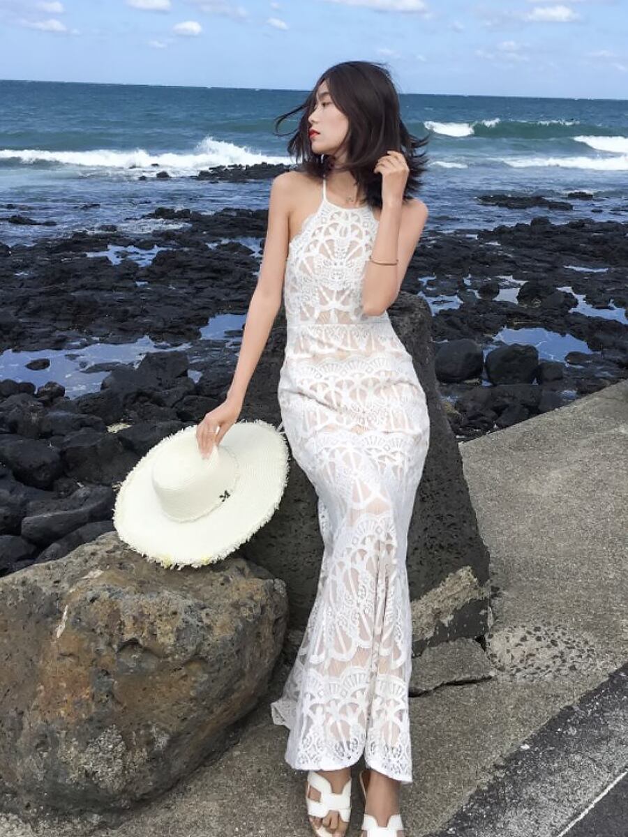 オールレースホルターネック風バックカットワンピース ワンピース ホワイト ドレス レース リゾートワンピース エキゾチック 上品 バックカット ホルターネック風 夏ワンピース 背中見せ ロング ロングワンピース Aライン バックリボン マキシ スリムフィット レトロ柄 オシャレ 大人女子 こなれ感 ラブリー キュート エレガント モダン 主役級 とろみ感 抜け感 お出かけ 韓国コーデ 韓国ファッション