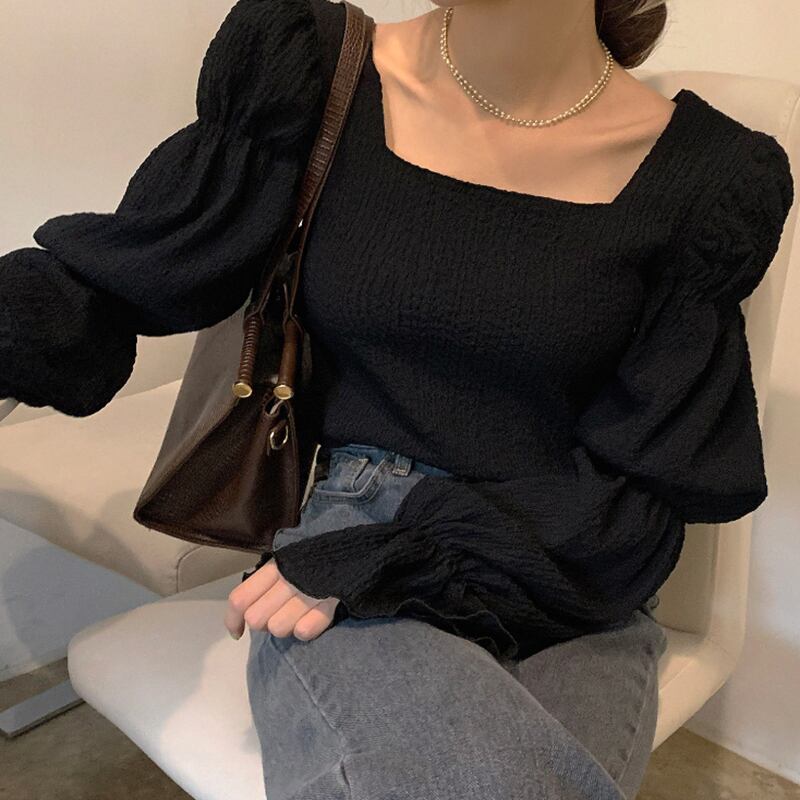 ブラックキャンディスリーブブラウス 長袖 ボリューム袖 パフスリーブ フレアスリーブ フレンチスリーブ 萌袖 スクエアネック フレア ワイド 切り替えデザイン シャーリング プリーツ フリル ふわふわ ぽわん袖 かわいい 大人可愛い きれいめ シンプル カジュアル 上品 おしゃれ お洒落 かっこいい レトロ 大人女子 こなれ感 ラフ ラブリー キュート ガーリー 個性的 エレガント モダン 主役級 存在感 抜け感 デート 韓国コーデ 韓国ファッション 黒 ブラック