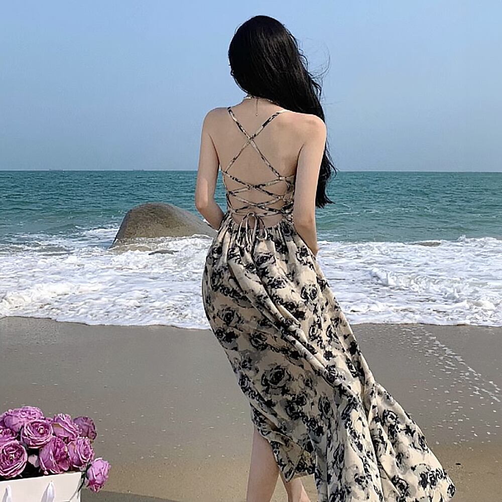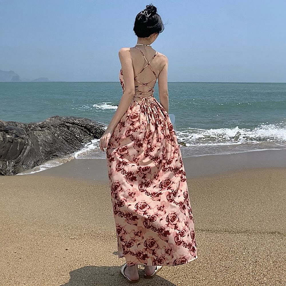 全2色 花柄バックレースアップマキシワンピース ワンピース ドレス キャミワンピ リゾートワンピース 夏ワンピ 横スリット サイドスリット ロング Aライン 背中見せ 背中開き セクシー 夏ワンピース サマーワンピース サマードレス ロングワンピース ク 涼しげ ゆったり 楽ちん 上品 レトロ柄 オシャレ ガーデンパーティ パーティ 大人女子 こなれ感 ラブリー キュート 体型カバー エレガント モダン 主役級 抜け感 お出かけ 韓国コーデ 韓国ファッション