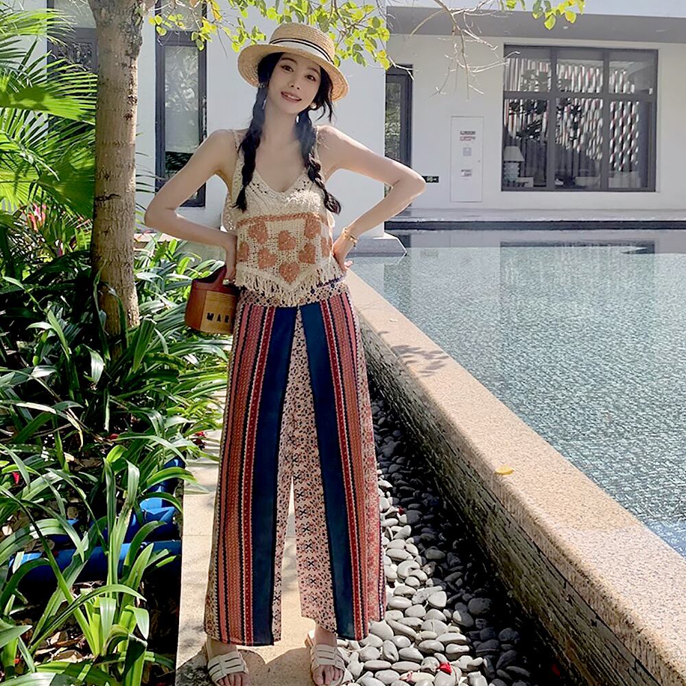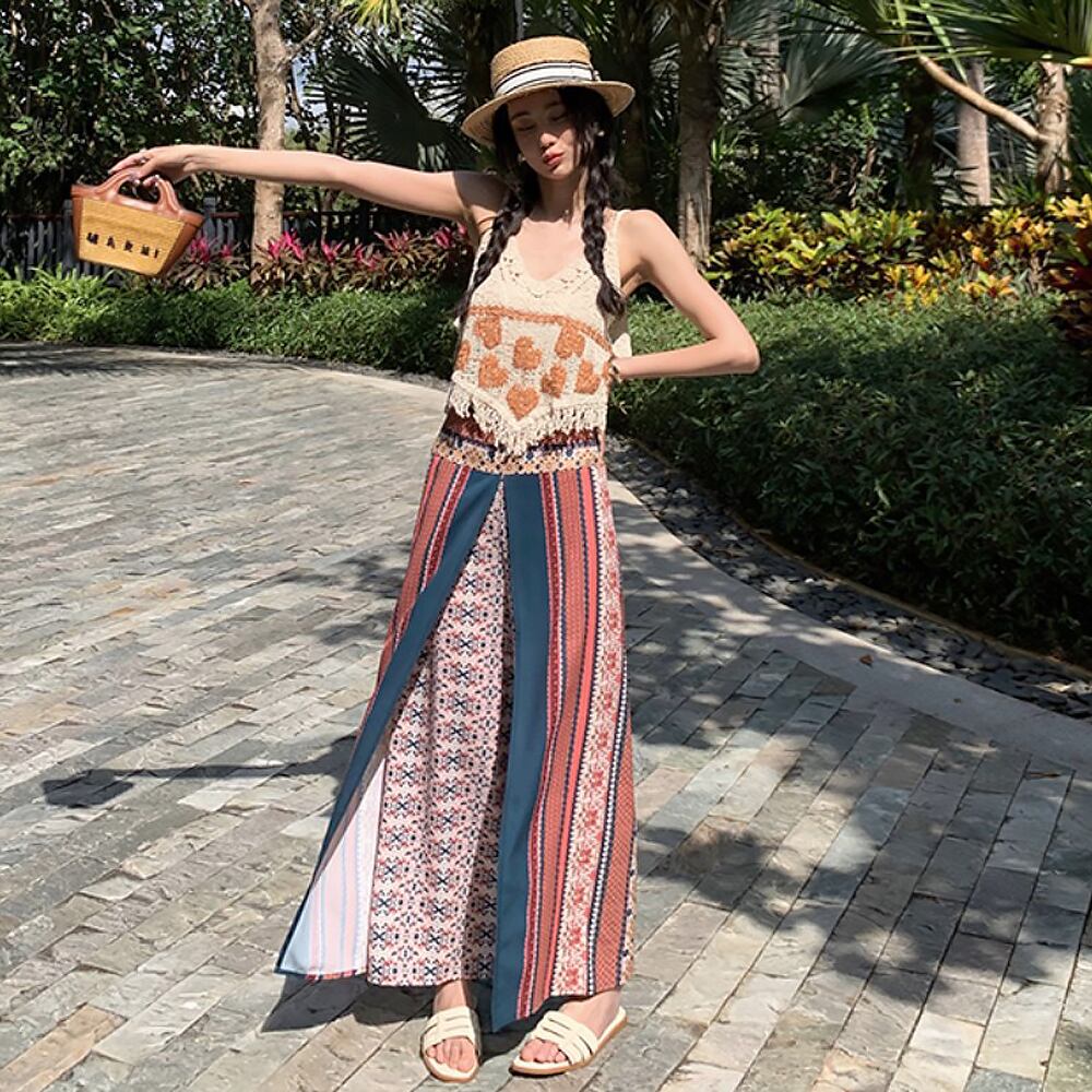 エキゾチックサマーロングパンツ ワイドパンツ リラックスパンツ エスニック ガウチョ ラップ風 イージーパンツ 楽ちん ロング ロング丈 フレア ワイド 切り替えデザイン ドッキング ハイウエスト ウエストゴム ふんわり 薄手 サマーパンツ 夏パンツ レイヤード風 かわいい 大人可愛い きれいめ カジュアル 上品 おしゃれ お洒落 かっこいい お家コーデ こなれ感 ラフ 個性的 クール モード系 エレガント モダン 主役級 存在感 抜け感 無地 韓国ファッション