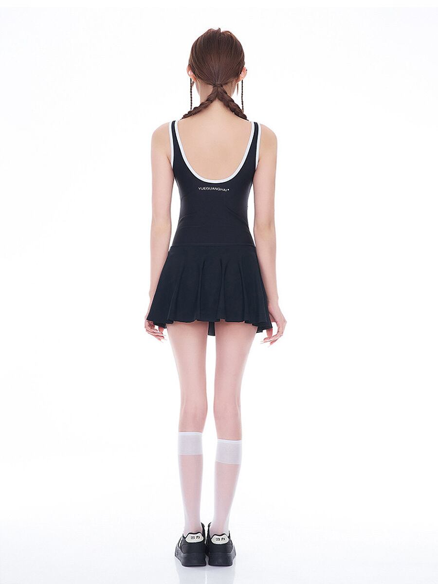 水着 アルファベットロゴ入りスカート付きワンピース水着 ワンピース水着 チアリーダー風 フレアスカート付きショートパンツ フレアスカート フィットネス ブラック 黒 ベーシック アルファベットプリント水着ワンピ 水着ワンピース スポーティ 体型カバー ガーリー きれいめ フェミニン かわいい パッド付き ワイヤーなし 伸縮性 セット 上下セット かわいい 大人可愛い きれいめ セクシー おしゃれ スタイリッシュ 美脚 脚長 韓国コーデ 韓国ファション スイムウェア