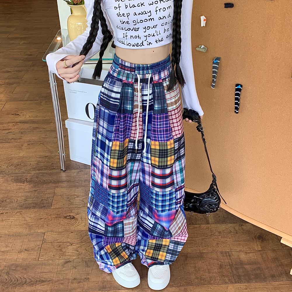 チェック切り替えパッチワークワイドパンツ ワイドロングパンツ ロングワイド イージーパンツ 切り替えデザイン ゆったりパンツ ストレートパンツ ボトムス パンツ ズボン ワイドパンツ ワイド ハイウエスト 楽ちん ウエストらくらく かわいい カジュアル おしゃれ お洒落 かっこいい レトロ アジアン エスニック こなれ感 ラフ メンズライク マニッシュ ボーイッシュ スポーティー 抜け感 レディース 通勤 通学 運動 ジム ヨガ アウトドア 普段使い 韓国コーデ 韓国ファッション