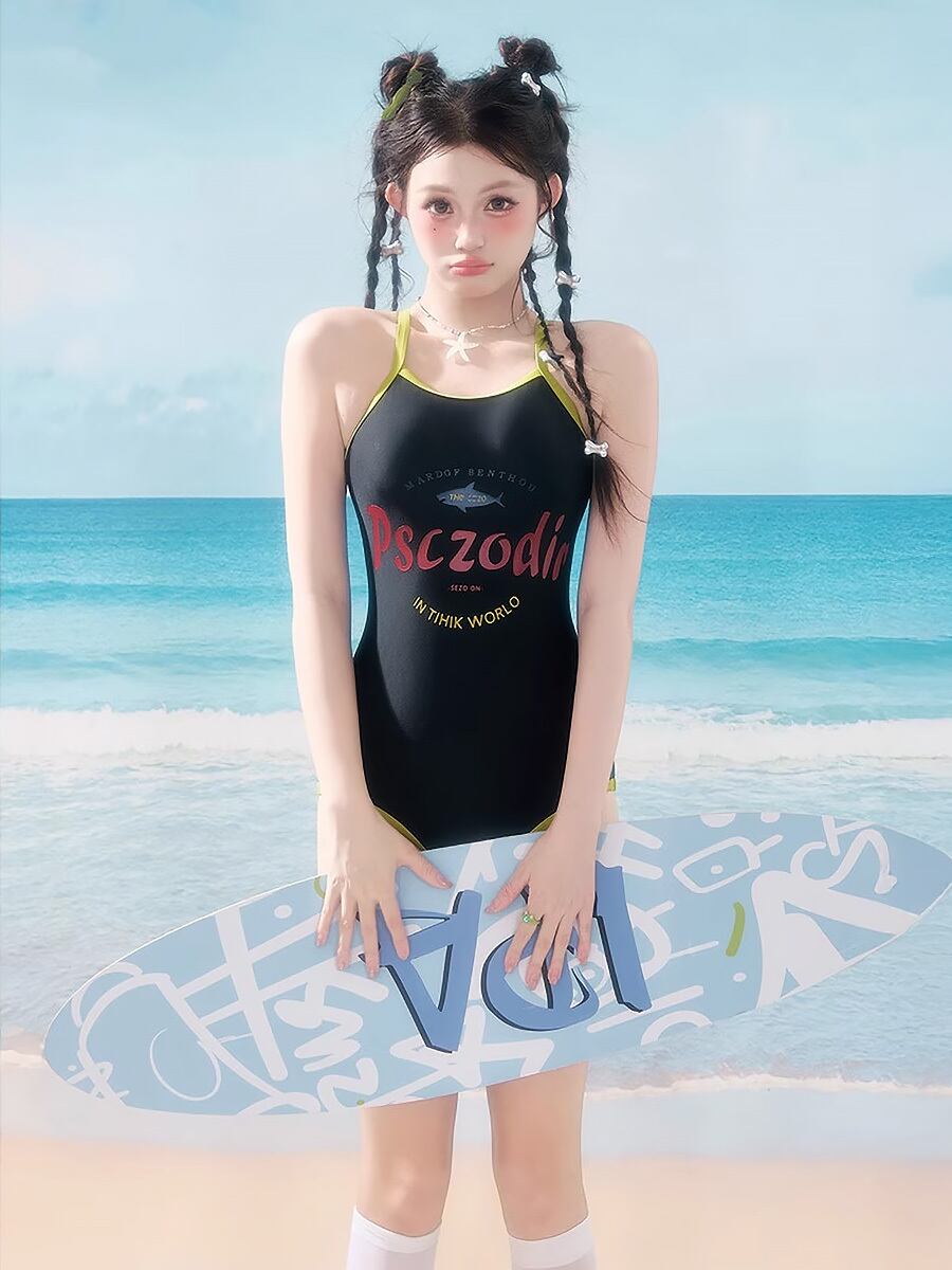 水着 フィッシュプリントベーシックワンピース水着 魚柄 フィッシュ柄 ロゴプリント ワンピース水着 水着ワンピース 水着ワンピ スイミングウェア ブラック 黒 黒地 赤 レッド 背中開き バックカット フィッシュアンドロゴ スイミング シンプル ベーシック スタンダード スイムウェア パッド付き オールインワン フェミニン ガーリー インスタ映え おしゃれ お洒落 レディース 女性用 ホテル 温泉 海 リゾート 旅行 スタイルアップ 韓国 韓国コーデ 韓国ファッション