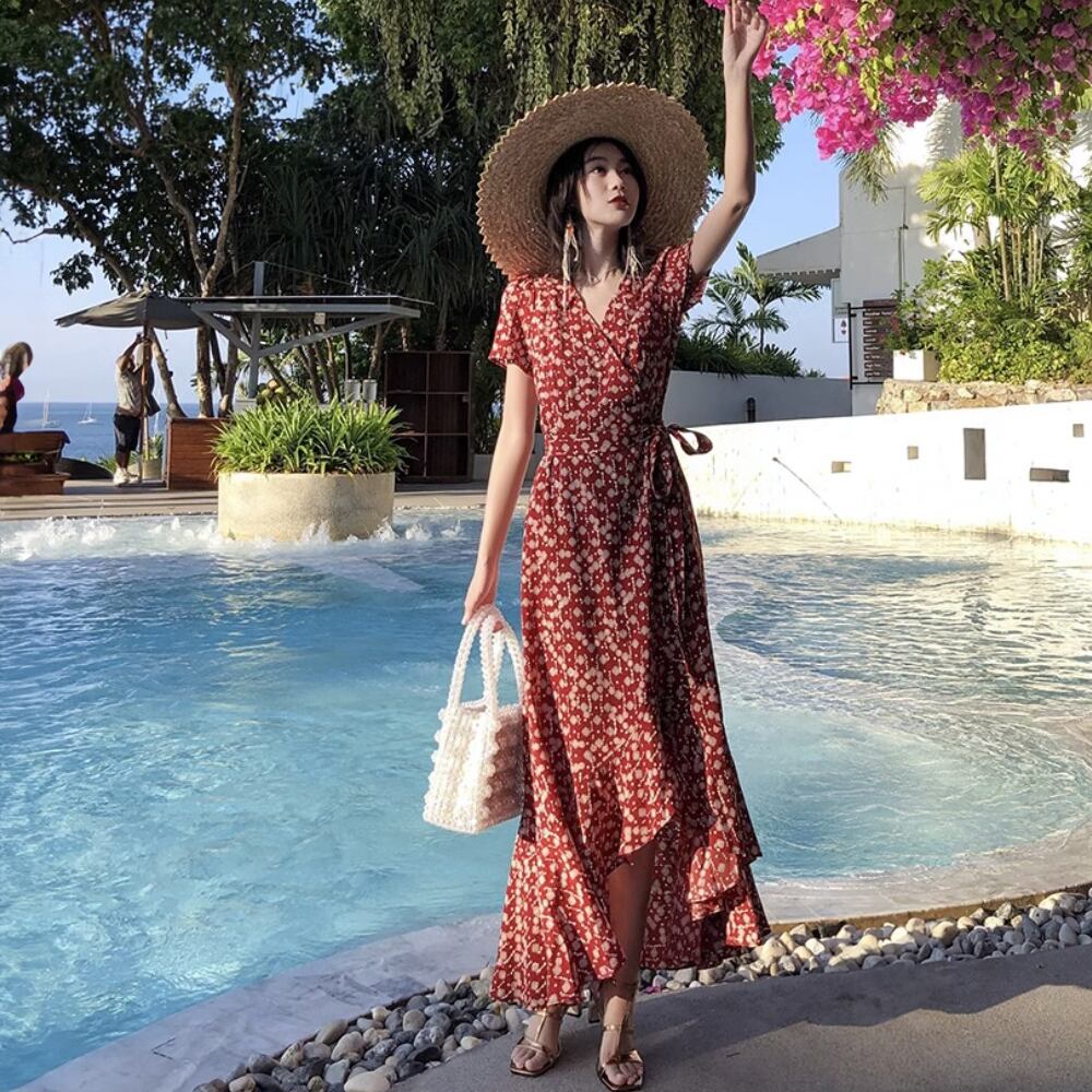 カシュクールロングワンピース フレアワンピース ワンピドレス ラップワンピース サマードレス 夏ワンピ 夏ワンピース 裾フリル フリル 半袖 パフスリーブ Vネック 襟なし フレア Aライン サイドリボン 横リボン 涼しげ ウエストマーク かわいい 大人可愛い きれいめ シンプル カジュアル 上品 おしゃれ お洒落 レトロ 大人女子 こなれ感 ラフ ラブリー キュート ガーリー 個性的 クール モード系 エレガント モダン 主役級 存在感 抜け感日 韓国コーデ 韓国ファッション 赤