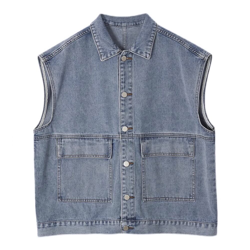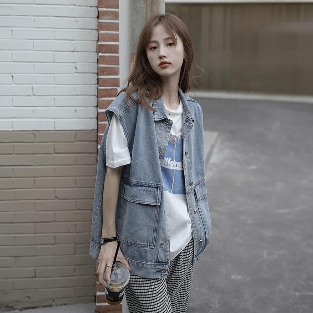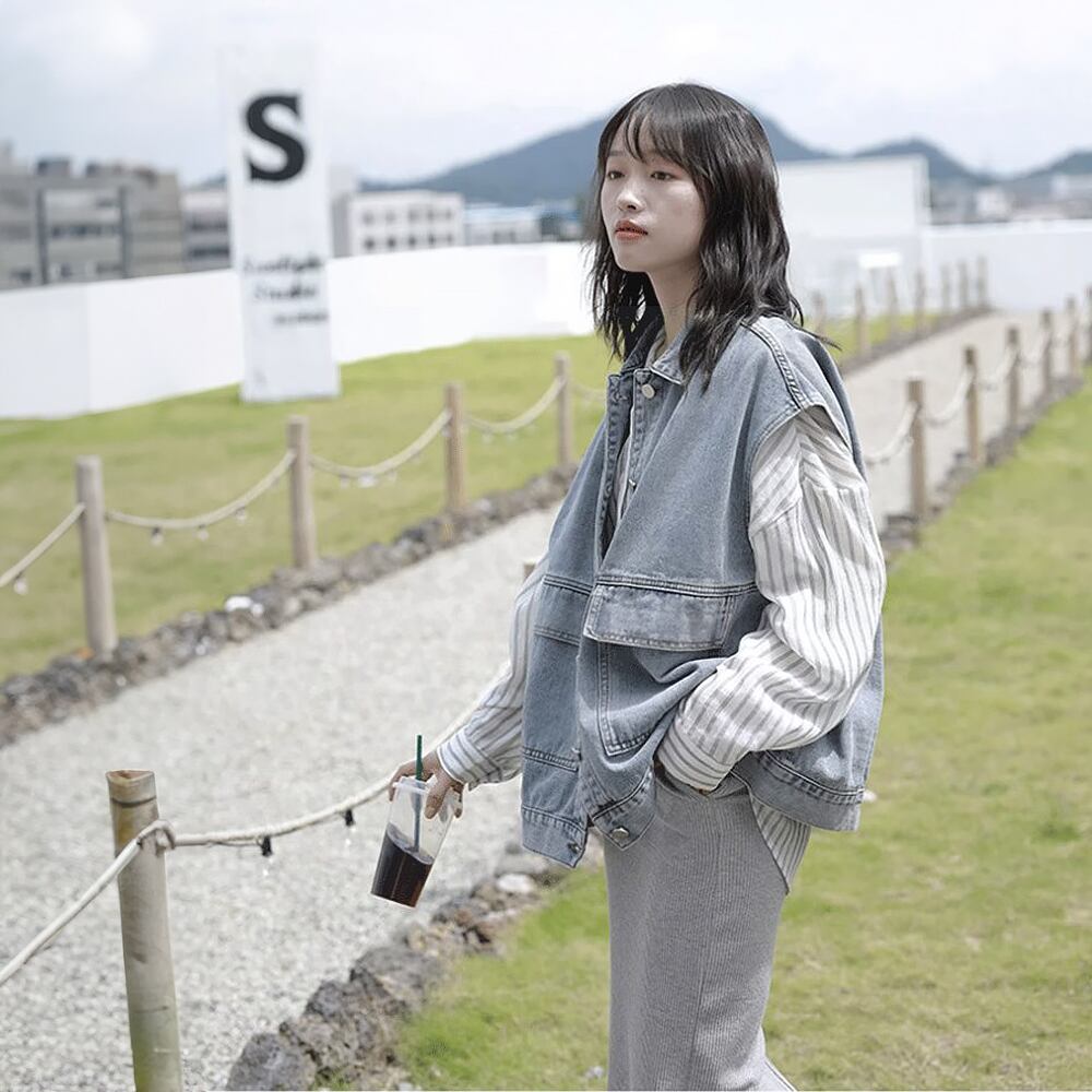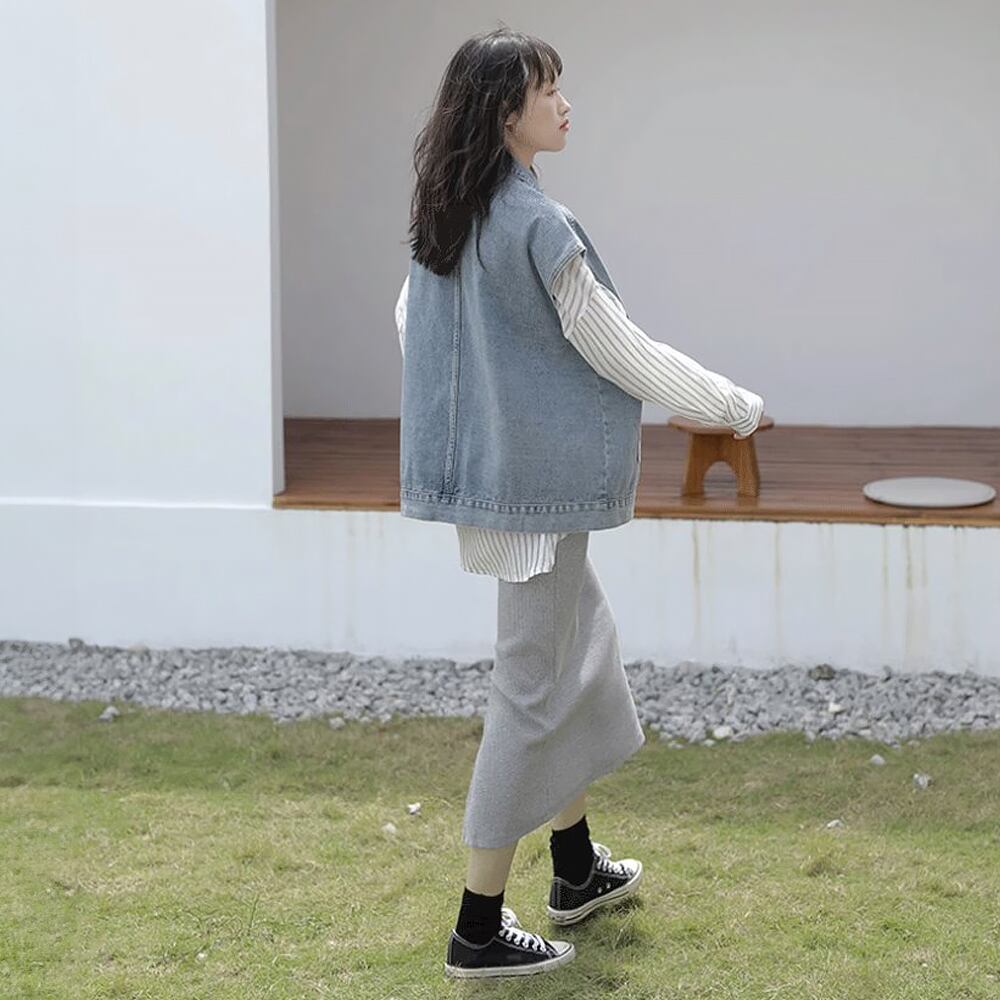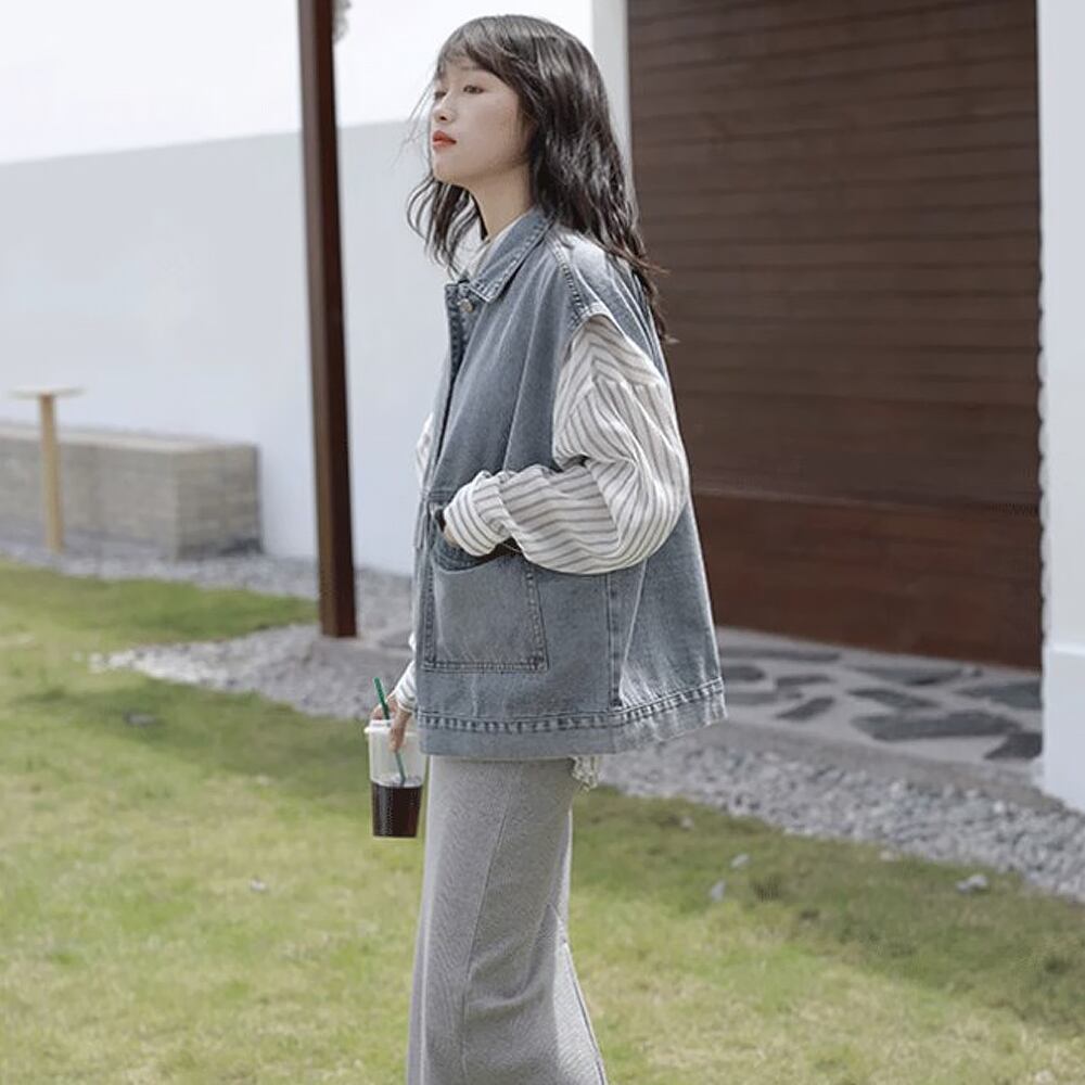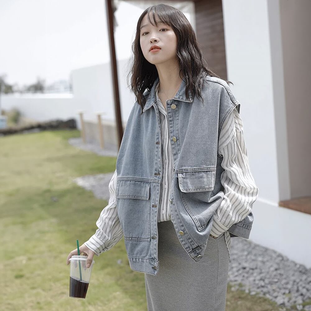 全2色 デニムベスト ジレ 羽織り シンプル ベーシック スタンダード 襟あり ポケット 前開き かわいい 大人可愛い カジュアル 大人 おしゃれ 大人女子 こなれ感 ラフ キュート マニッシュ ボーイッシュ 主役級 存在感 抜け感 無地 秋 春 レディース 休日 着回し 普段使い 重ね着 レイヤードコーデ オルチャン デニム ブラック ブルー 韓国コーデ 韓国ファッション