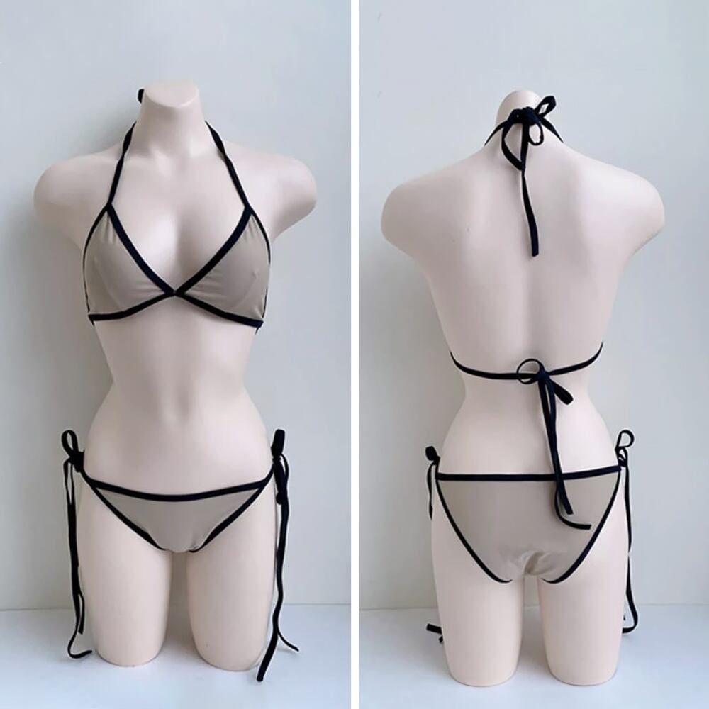 水着 ホルターネックパイピング配色ビキニ 紐ビキニ タイアップビキニ ビキニ タイアップ ホルターネック スイムウェア セクシービキニ セパレート ツーピース パッド付き ワイヤーあり 胸寄せ 体系カバー 胸元 谷間 谷間魅せ かわいい きれいめ セクシー ベーシック シンプル クール モード系 モダン かっこいい レディース 海 ビーチ プール リゾート 美脚 脚長 スタイル 高見え 格上げ モテ 韓国コーデ 韓国ファッション ベージュ