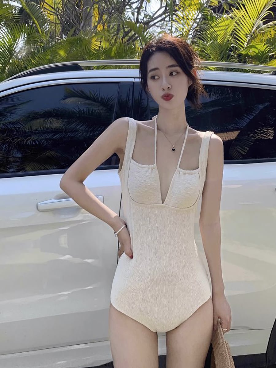 水着 プランジングホルターネックワンピース ワンピース水着 ストラップ ホルターネック 胸V字開きパット付き ワイヤーなし バストドロスト ドロスト ウエスト細見え 胸元ちら見せ チラ見え チラ見 胸元 かわいい セクシー 大人可愛い おしゃれ 主役級 ラブリー キュート ガーリー 無地 ホワイト 白 10代 20代 30代 レディース 上品 お嬢様 海 ビーチ プール リゾート 美脚 脚長 着痩せ 韓国系 オルチャン 韓国コーデ