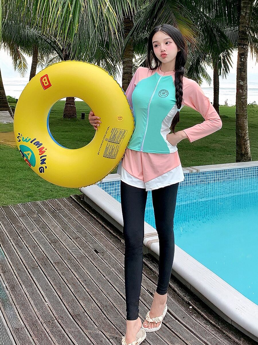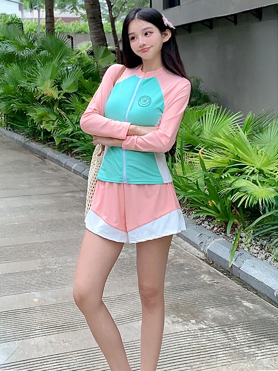 ボトムのオーバーショートパンツはフレアデザインで、キュートなスポーティでかわいいデザインです。日焼け防止にも効果的!
