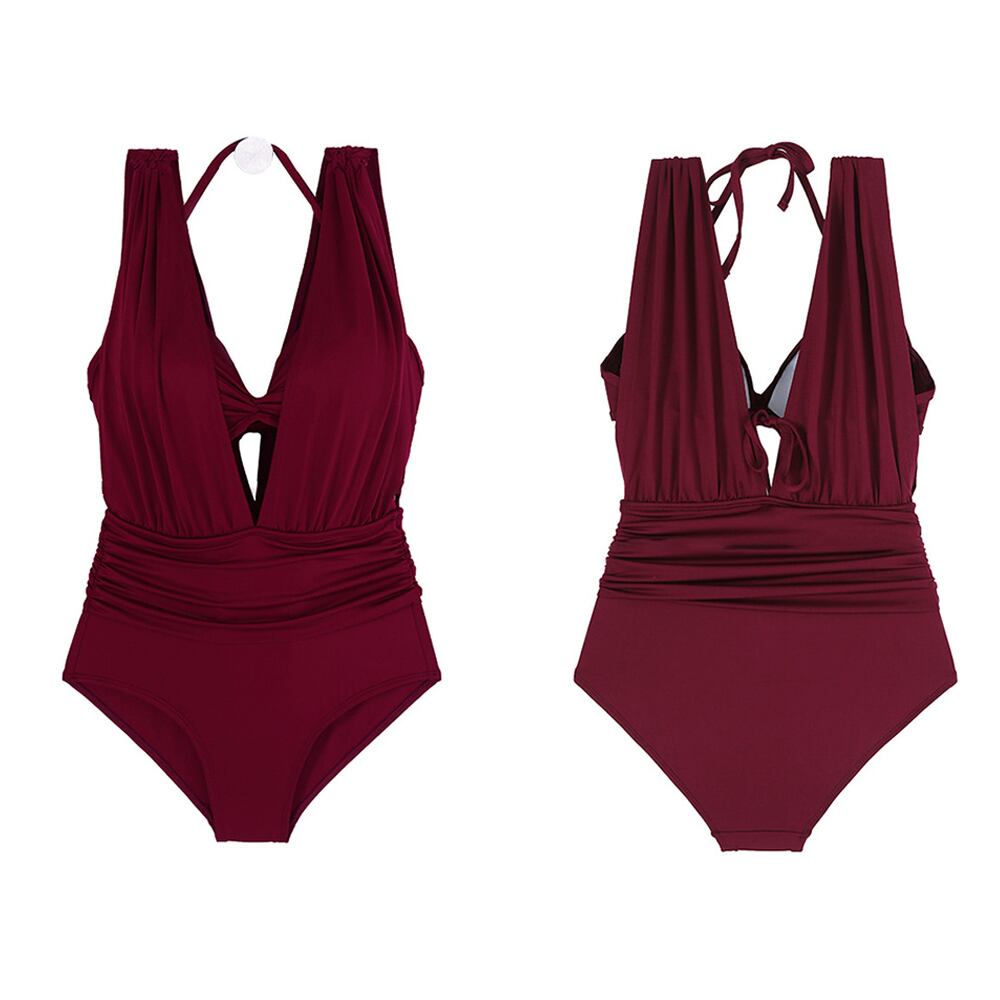 水着 ツーピース ホルターネック プランジング バックシャン バックコンシャス 見た目ワンピース スイムウェア 肩シャーリング 紫 パープル バイオレット 黒 ブラック 脱ぎ着楽ちん バックスタイルビキニ パッド付き ワイヤーあり 背中カットアウト セクシー シンプル 大人 おしゃれ お洒落 女っぽ 個性的 無地 レディース ホテル 温泉 海 ビーチ プール リゾート 旅行 着痩せ スタイルアップ 美スタイル 韓国 韓国系 オルチャン M L XL 韓国コーデ 韓国ファッション