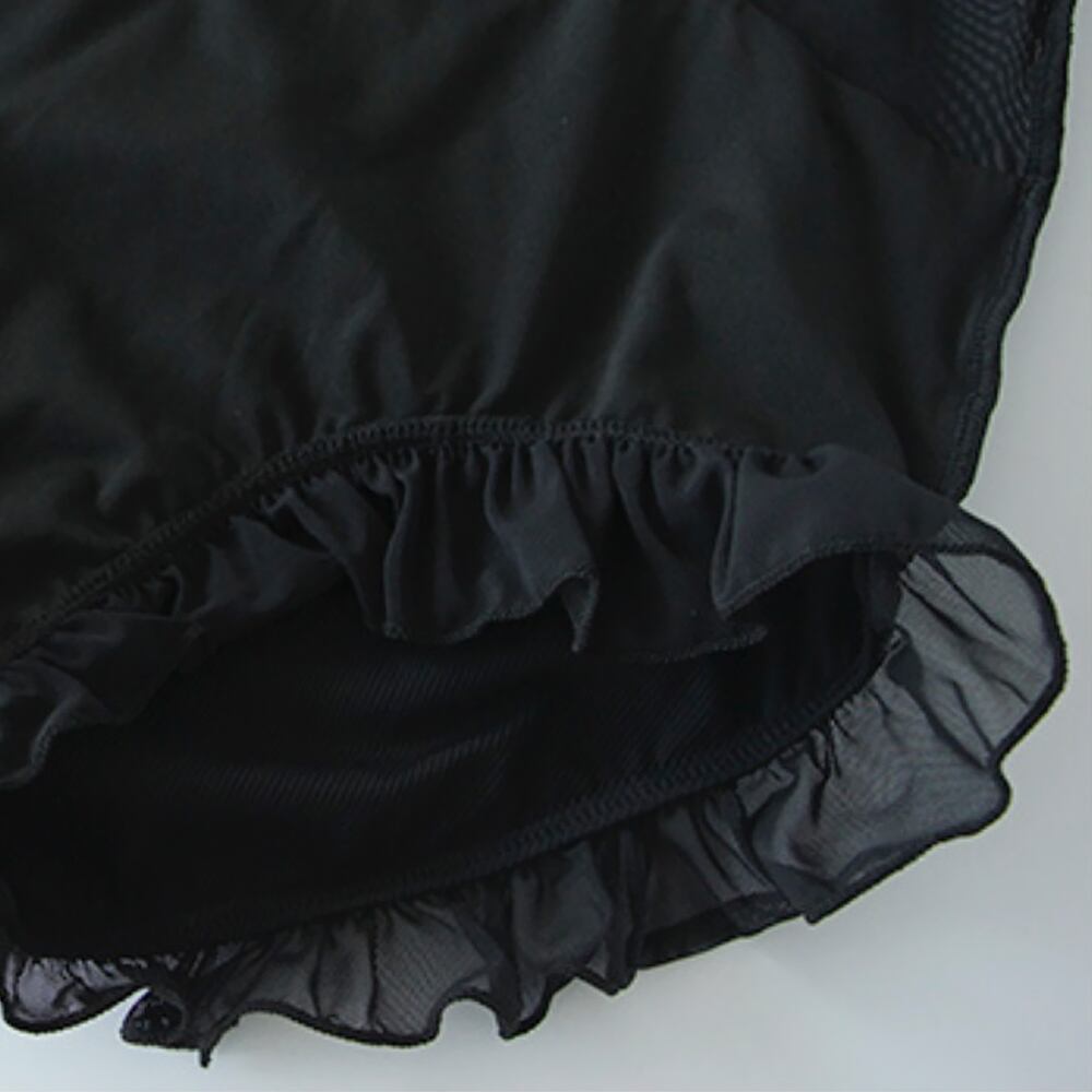 肩と足ぐりにはフリルがついて可愛らしい部分も!