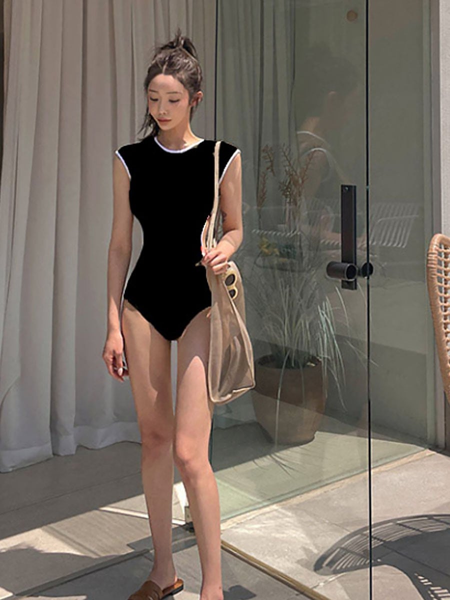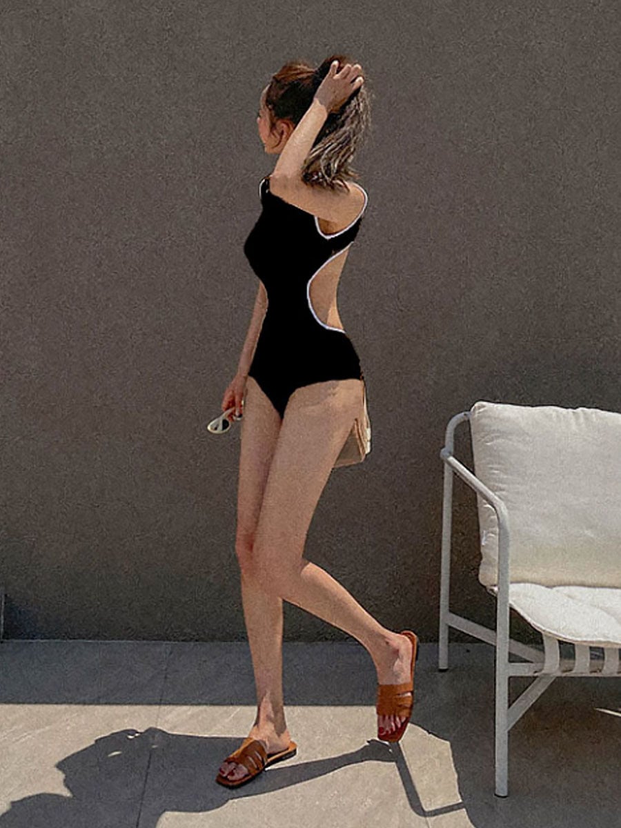 全2色 水着 バイカラーウエスト細見えワンピース水着 モノキニ ワンピース水着 背中見せ、ハイウエスト バイカラー ツートンカラー バイピング ブラック カーキ 黒 スイムウェア パッド付き ノンワイヤー 色っぽい 大人っぽい シンプル かわいい 大人可愛い 盛り 寄せ 体型カバー 胸寄せ きれいめ セクシー sexy シンプル 華やか おしゃれ スタイリッシュ モダン エキゾチック 美脚 脚長 韓国コーデ 韓国ファション