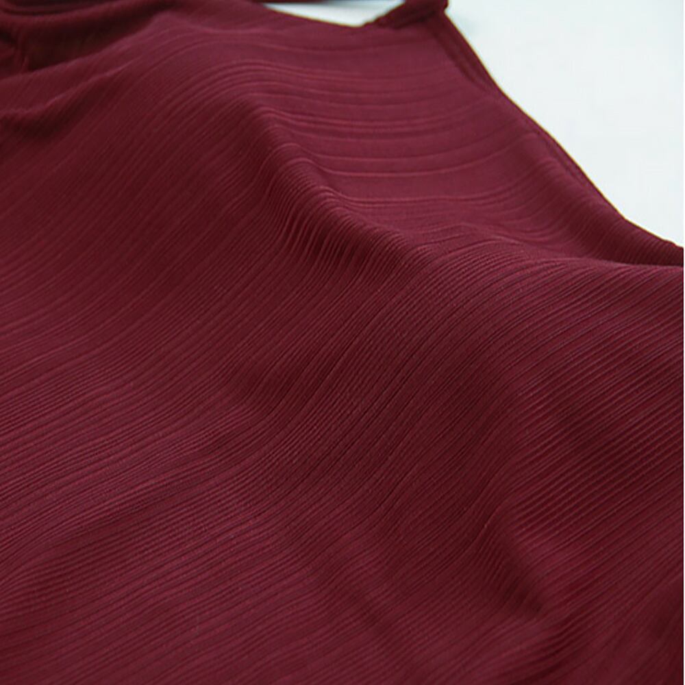 ワインレッドの質感のある生地で作られたベーシックなワンピース水着です。