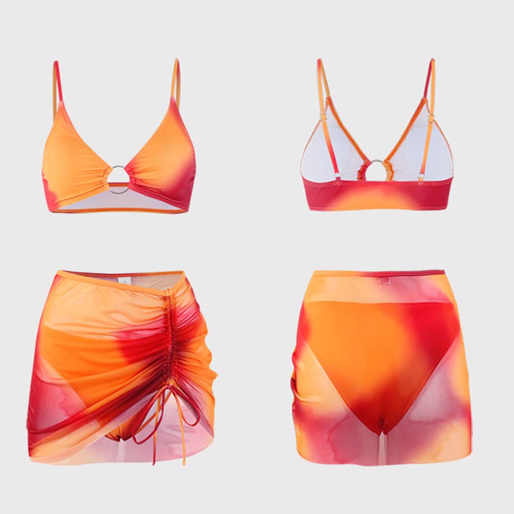 3点セット 水着 グラデーションブラレットビキニ上下+ドロストスカート サロン スカート オレンジグラデーション グラデーション ドロスト ビキニ ブラジリアンビキニ ベーシック シンプル オレンジ系 赤 スイムウェア パッド付き パッド ワイヤーなし 美脚 レトロ モダン フェミニン セクシー 上品 大人 お嬢様 おしゃれ お洒落 女っぽ 個性的 レディース ホテル 温泉 海 ビーチ プール リゾート スタイルアップ 韓国 M L XL 韓国コーデ 韓国ファッション