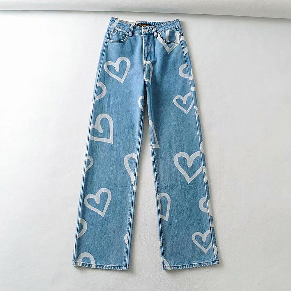 ハートプリントロングデニム パンツ ハイウエスト ワイドルーズデニム ハートペイント ハート ワイドレッグ レトロ 体型カバー ヴィンテージ風 ヒップマーク かわいい 大人可愛い ジーパン カジュアル 大人 おしゃれ お洒落 かっこいい 大人可愛い 大人女子 こなれ感 ラフ ラブリー キュート ガーリー 個性的 レディース 学生 通学 デート お出かけ 公園デビュー 女子会 休日 リゾート 旅行 韓国コーデ 韓国ファッション