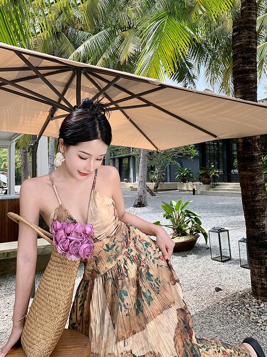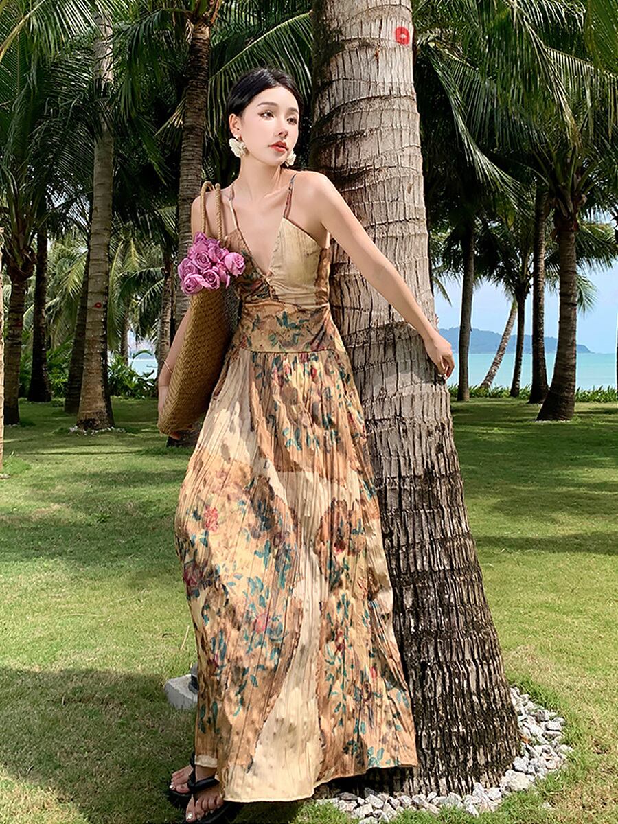 バックカットキャミソールマキシワンピース ワンピース ドレス ボヘミアン柄 リゾートワンピース エスニック エキゾチック フォークロア 夏ワンピース 背中見せ ロング ロングワンピース Aライン Vネック ハイウエスト ゆったり 楽ちん 上品 レトロ柄 オシャレ 大人女子 こなれ感 ラブリー キュート 体型カバー エレガント モダン 主役級 とろみ感 抜け感 お出かけ 韓国コーデ 韓国ファッション