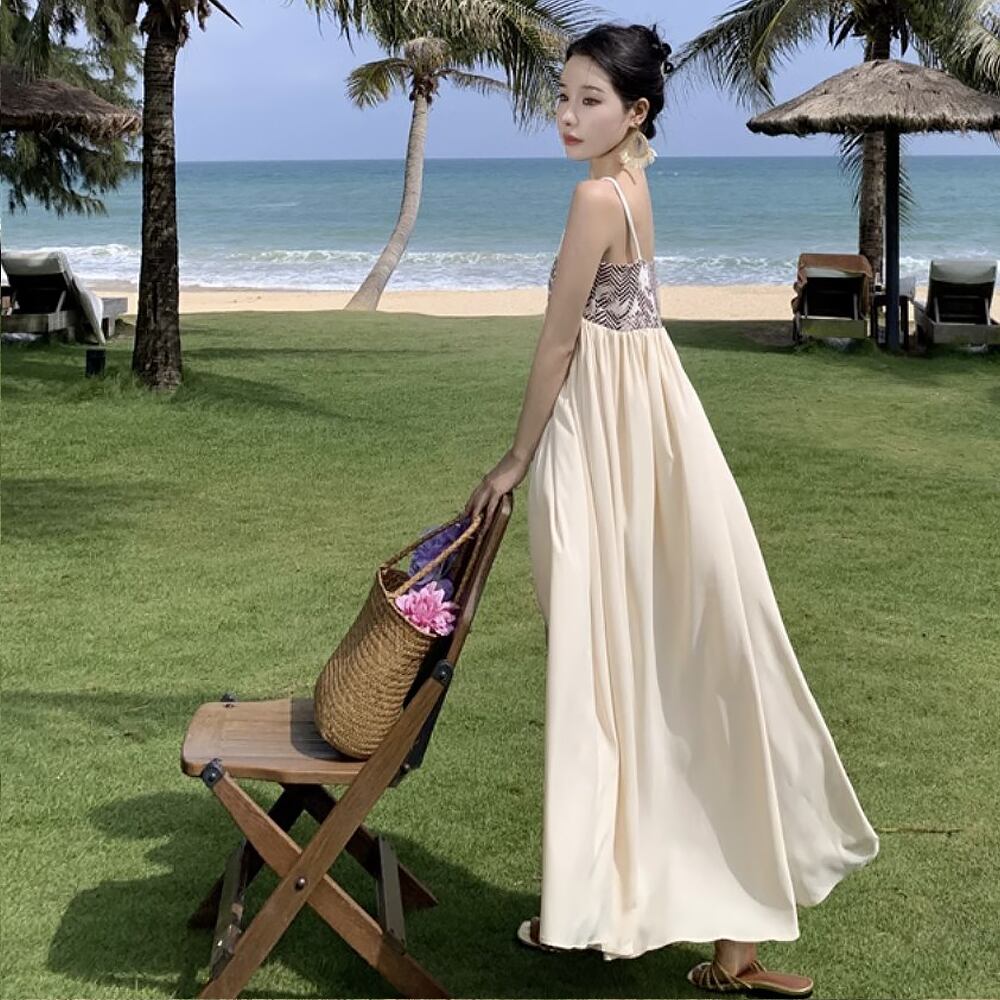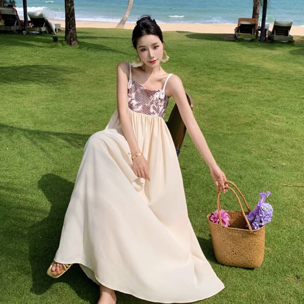 ハイウエストサマーワンピース ワンピース ドレス キャミワンピ サンドレス リゾートワンピース 夏ワンピ 胸下切り替え シフォン ロング Aライン へプラム 肩出し 肩見せ 鎖骨見せ 大人っぽい 夏ワンピース サマーワンピース サマードレス ロングワンピース 涼しげ ゆったり 楽ちん 上品 レトロ柄 オシャレ ガーデンパーティ パーティ 大人女子 こなれ感 ラブリー キュート 体型カバー エレガント モダン お出かけ 韓国コーデ 韓国ファッション ベージュ