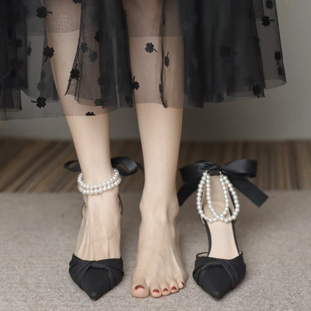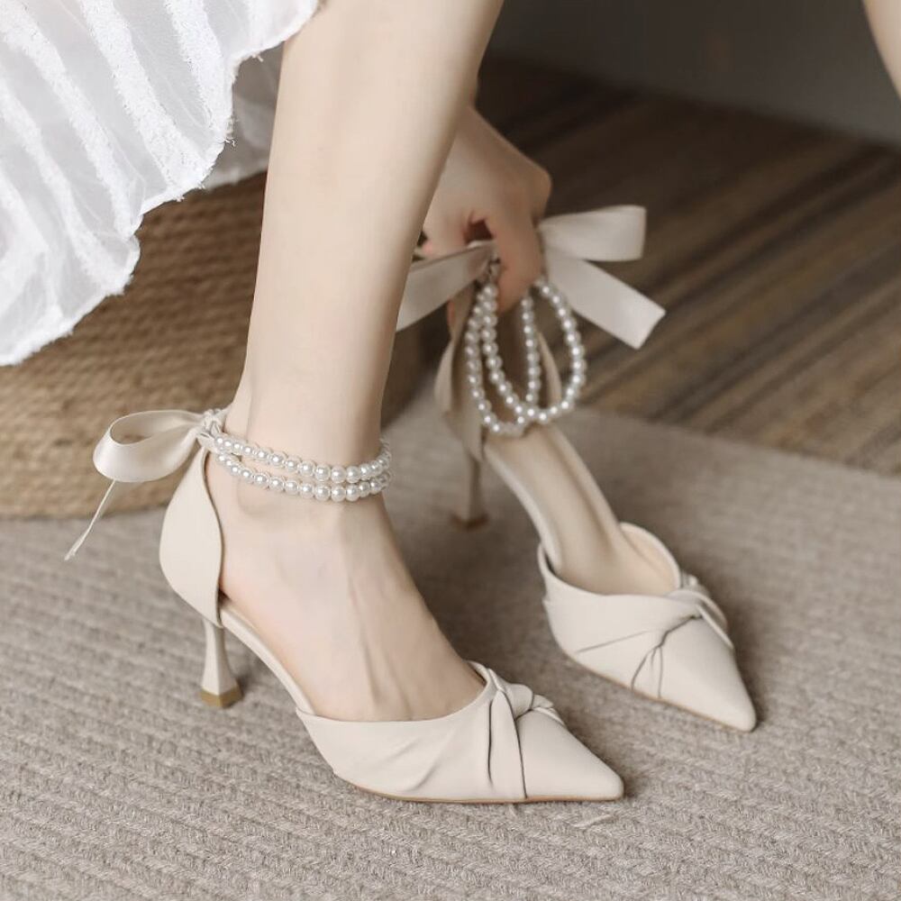 全2色 ハイヒール ポインテッド パールストラップ バックリボン 7.5cmヒール 歩きやすい 履きやすい かわいい 大人可愛い きれいめ シンプル 大人 上品 おしゃれ お洒落 かっこいい レトロ フォーマル エレガント きちんと感 個性的 クール モード系 セクシー モダン 主役級 存在感 こなれ感 とろみ感 抜け感 柄 誕生日 成人式 入学式 入園式 卒業式 卒園式 謝恩会 韓国コーデ 韓国ファション アイボリー ブラック