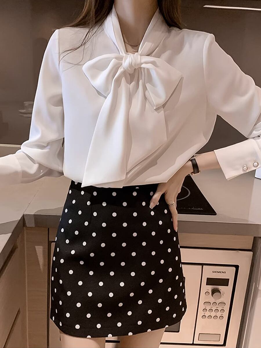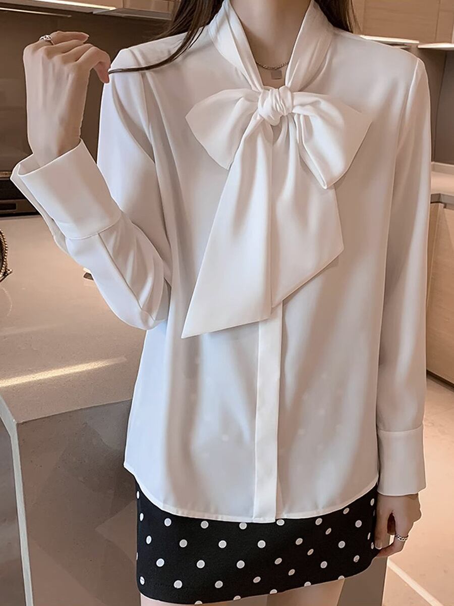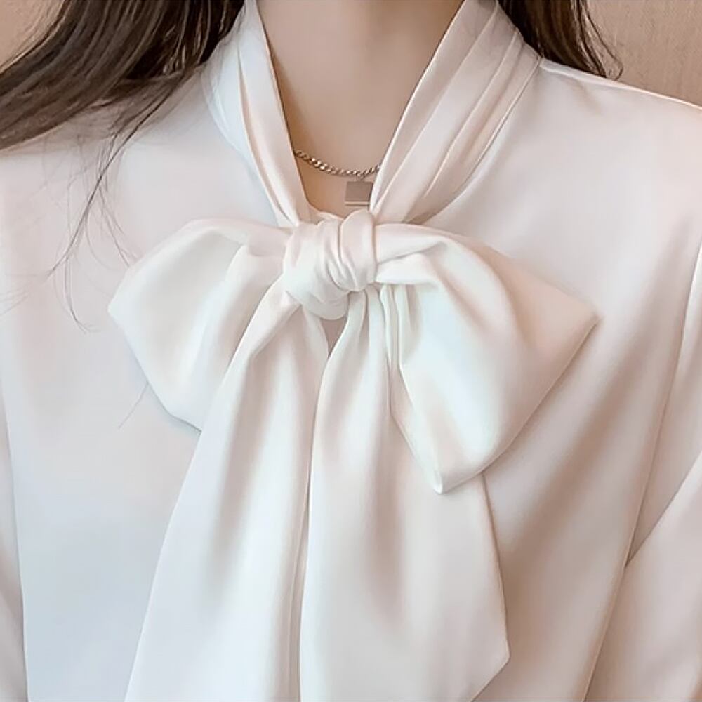 ボリュームのあるボウタイがポイントのベーシックなシフォンブラウスです。