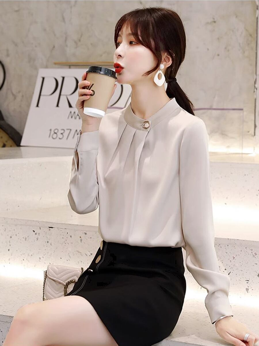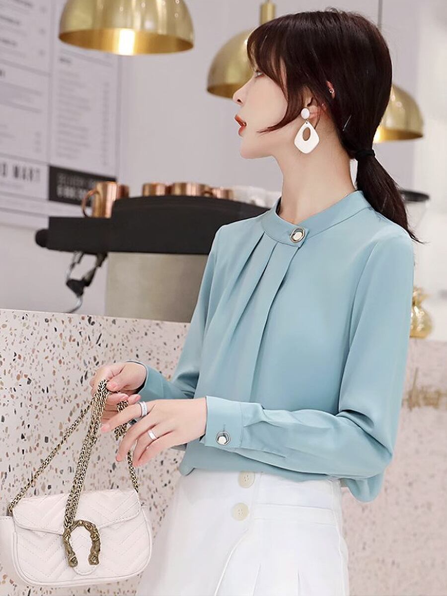 全2色 飾りサイドボタンシフォンプルオーバーブラウス スタンドネック パールボタン タック タック寄せ ブラウス フェミニン シフォンブラウス シフォン プルオーバー きちんと感 きれいめ ブラウス ビジネスコーデ お出かけ 長袖 かわいい 大人可愛い きれいめ カジュアル おしゃれ お洒落 かっこいい 大人可愛い 大人女子 ラフ ラブリー キュート 個性的 レディース OL 通勤 デート お出かけ インスタ映え 韓国コーデ 韓国ファッション ベージュ ターコイス