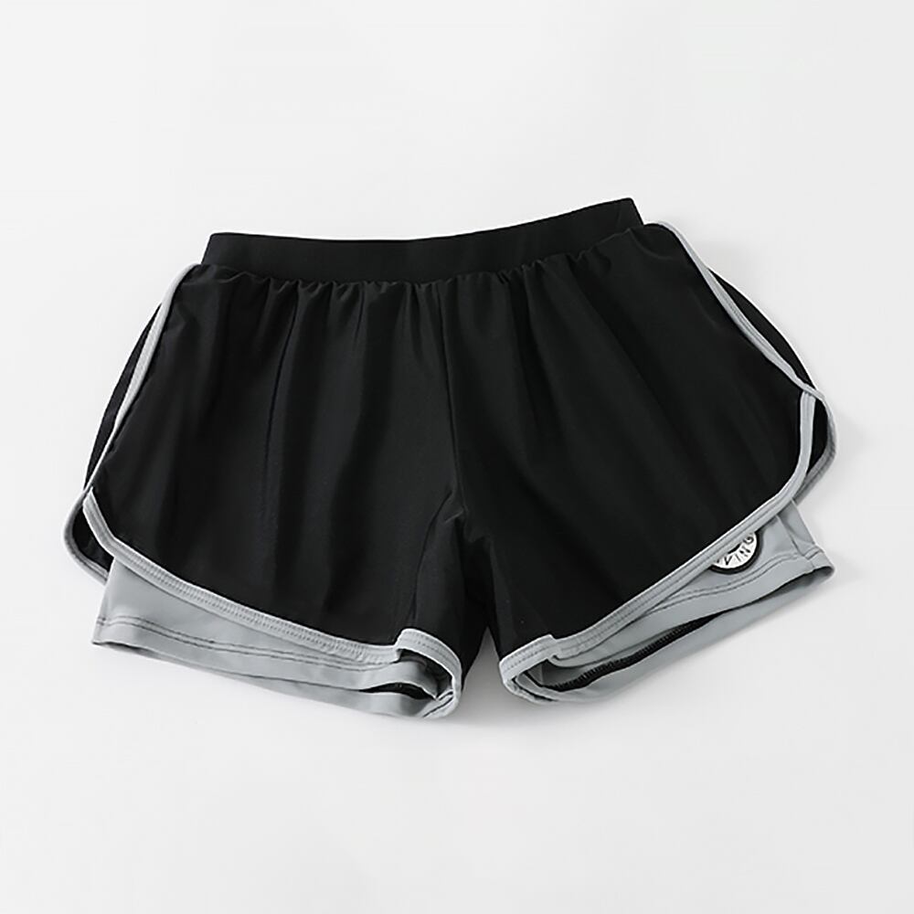 ハーフジップの長袖トップスとショートパンツとフレアパンツがドッキングになっているボトムの2点セットです。