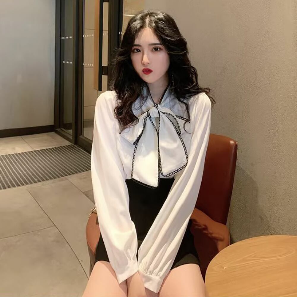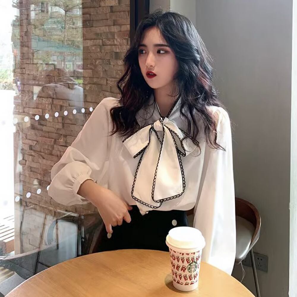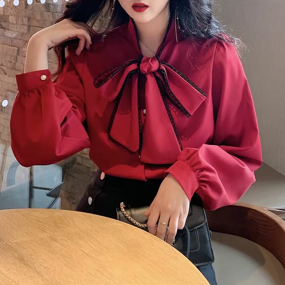 全3色 ステッチ付きボウタイブラウス ビッグリボン 首元リボン リボン ボウタイ ボウタイブラウス シャツ ブラウス 長袖 ボリューム袖 ふんわり袖 パフスリーブ 萌袖 シフォン リボン 大人カラー かわいい 大人可愛い きれいめ シンプル カジュアル 上品 おしゃれ かっこいい レトロ こなれ感 ラブリー キュート 個性的 モード系 エレガント モダン 主役級 存在感 抜け感 柄 レディース OL お出かけ 女子会 韓国コーデ 韓国ファション レッド 白 黒 赤