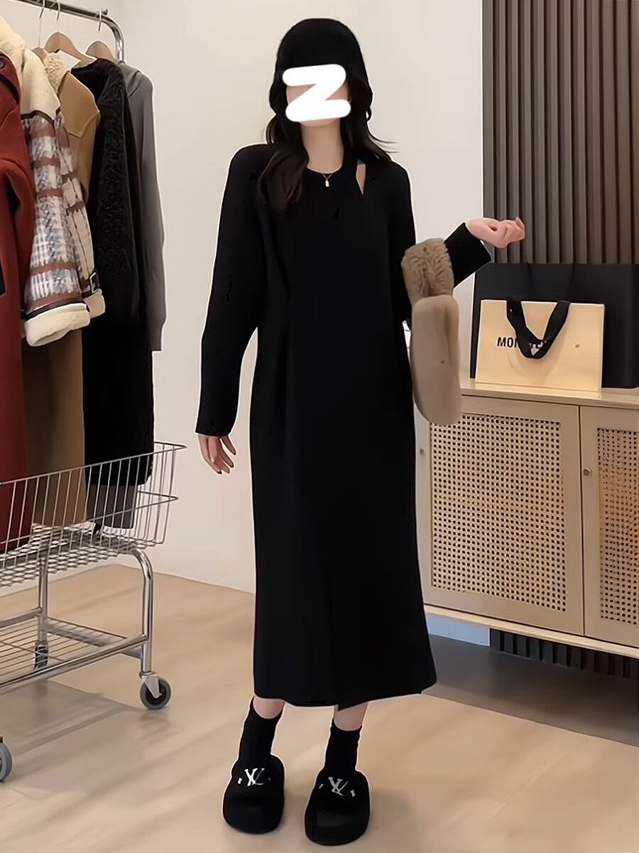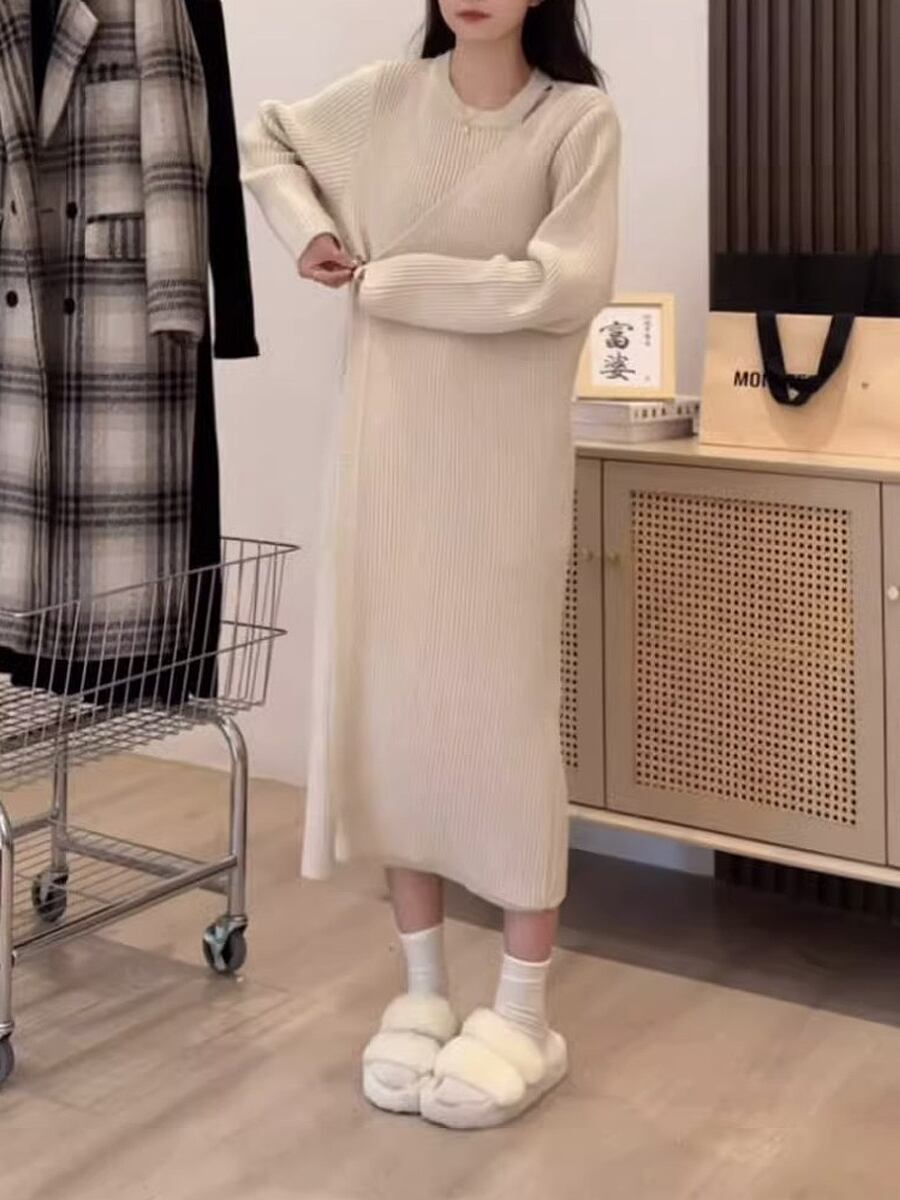 全2色 リブニットカシュクール風ワンピース リブニット 膝下 ミモレ 長袖 ラウンドネック ストレート Iライン リブ ニット かわいい 大人可愛い きれいめ シンプル カジュアル 大人 上品 おしゃれ お洒落 かっこいい 大人女子 こなれ感 キュート ガーリー 無地 春 秋 冬 オフィス ビジネス OL 通勤 学生 通学 デート お出かけ 女子会 休日 旅行 普段使い 重ね着 お揃い 双子 韓国 韓国系 オルチャン ファッション コーデ スタイル 楽ちん 韓国コーデ 韓国ファッション 黒 白