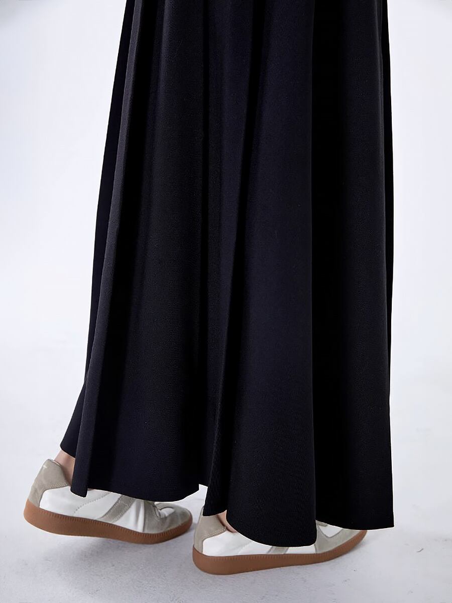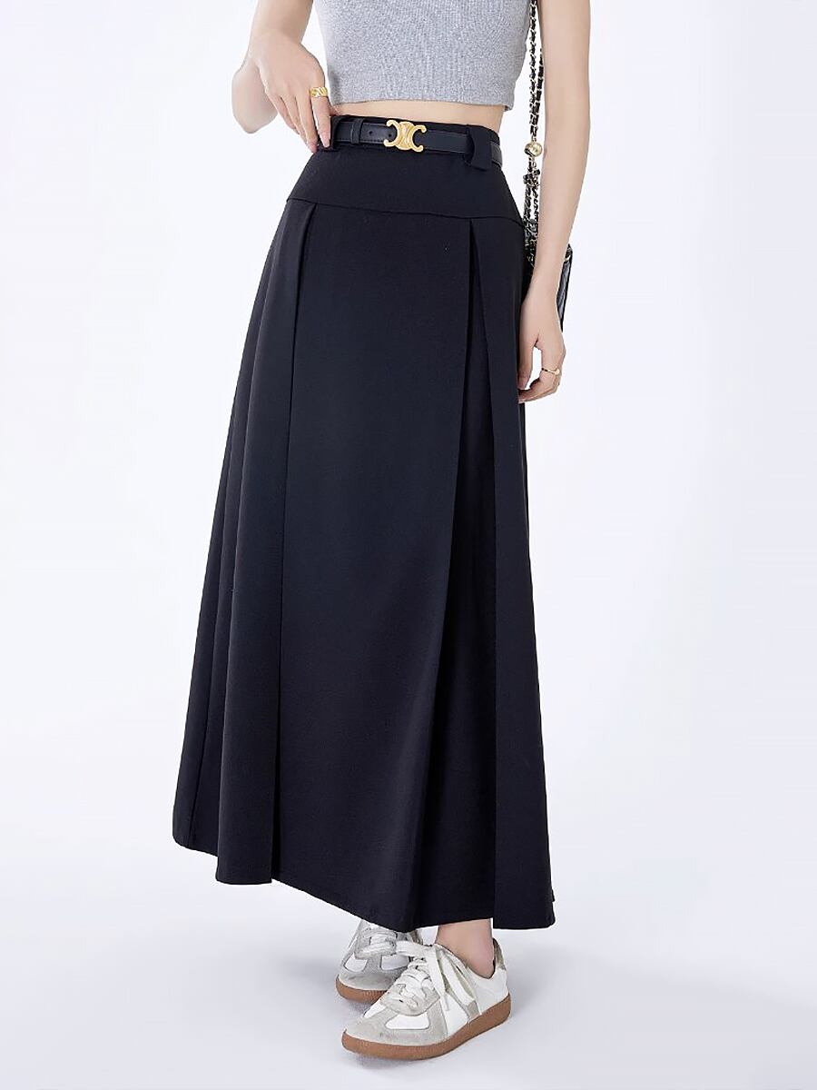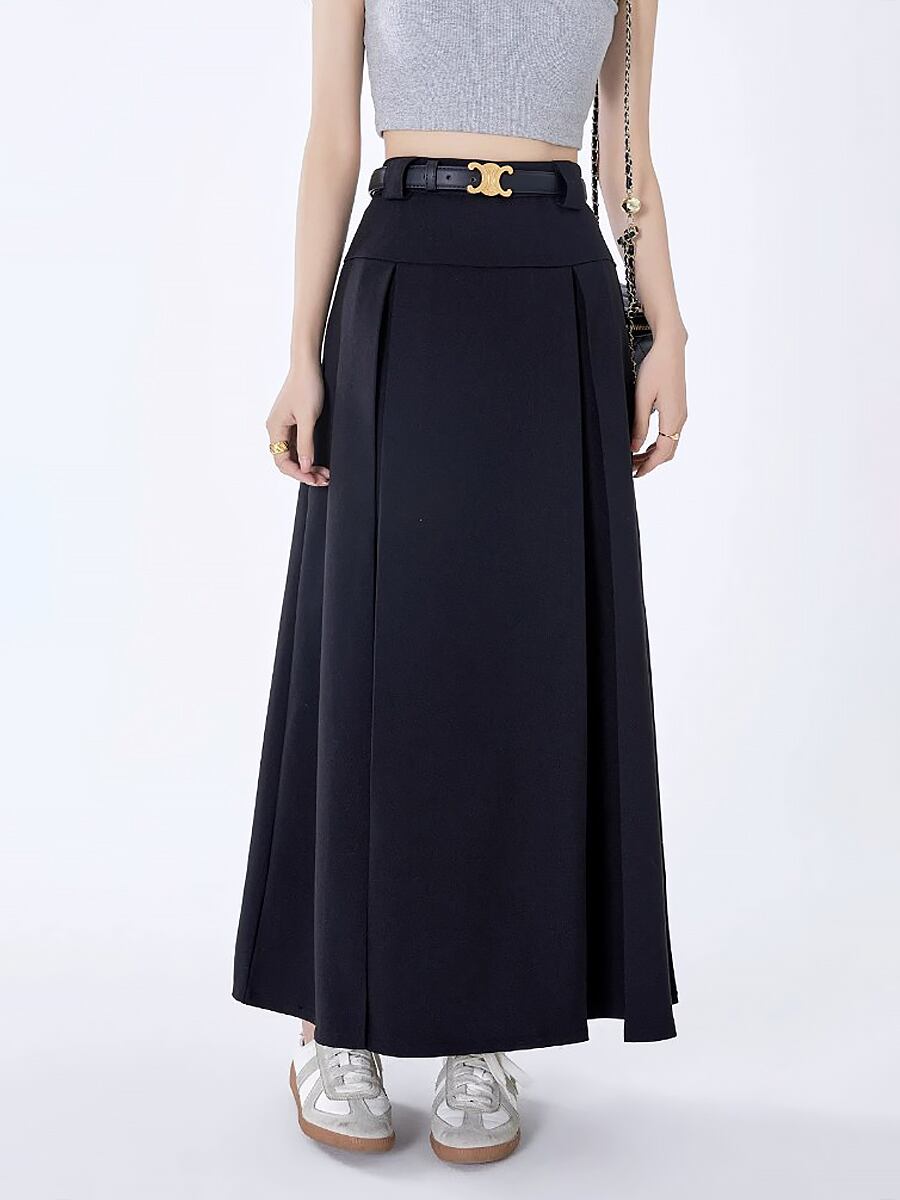 切り替えのある太めプリーツのマキシ丈スカートです。