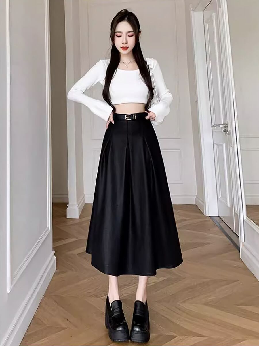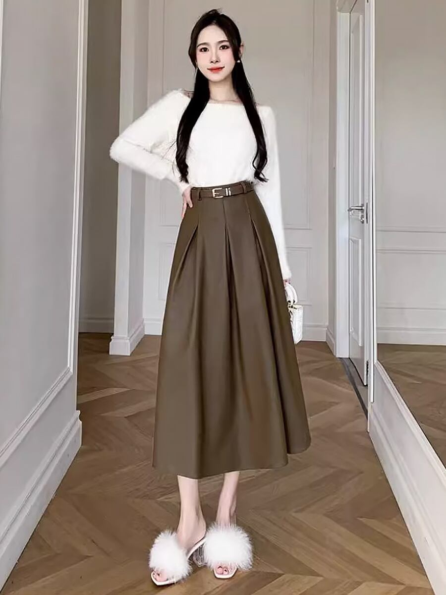 全2色 PUレザーフレアロングスカート フェイクレザー マキシ ロング ロングスカート Aライン ハイウエスト スカート かわいい 大人可愛い きれいめ シンプル カジュアル 上品 おしゃれ かっこいい レトロ こなれ感 コンサバ系 ラブリー キュート 楽ちん 個性的 モード系 エレガント モダン 主役級 存在感 抜け感 柄 レディース 着回し お出かけ 韓国コーデ 韓国ファション 黒 茶色