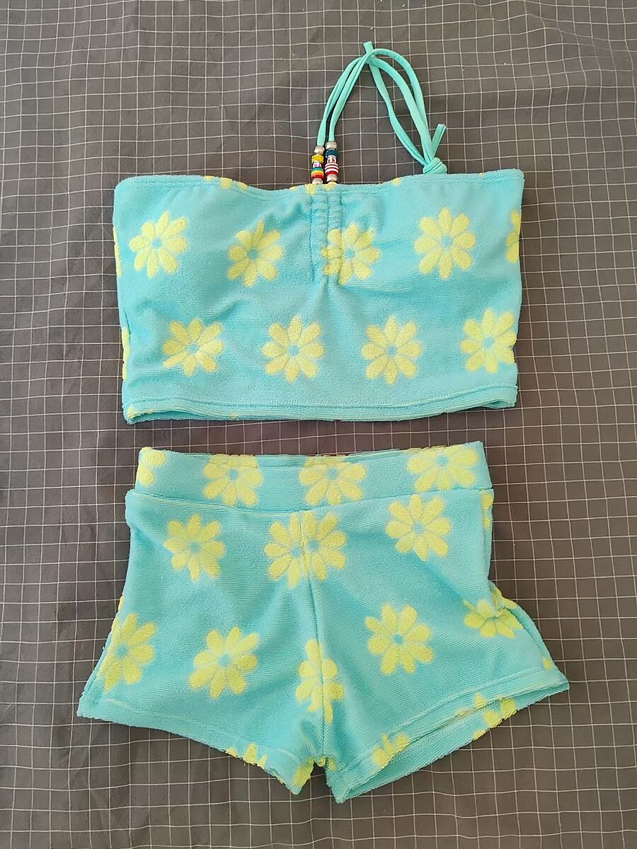 やさしい肌触りのタオル生地ビキニ上下です。